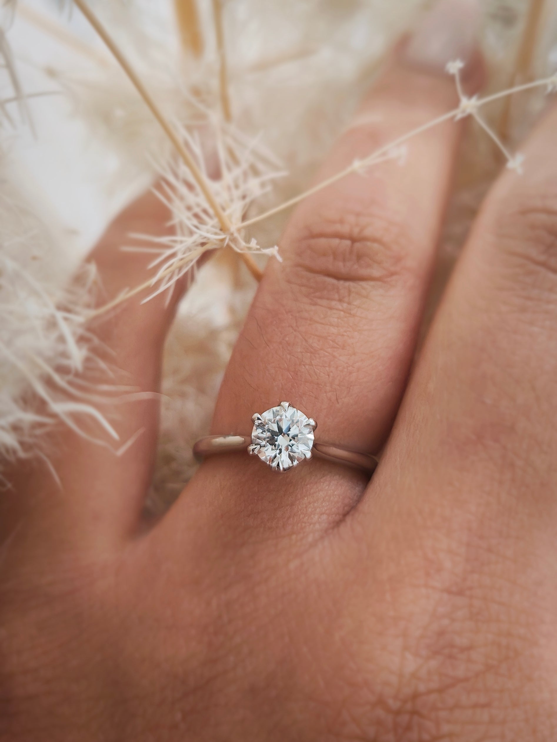Experience the warm, captivating brilliance of the Ember Glow Ring. This classic solitaire features a perfectly cut diamond, its facets catching the light like a glowing ember. The sleek, polished setting allows the diamond's natural radiance to take center stage, creating a timeless symbol of your enduring love. Let the Ember Glow Ring's subtle yet powerful sparkle illuminate your journey together.