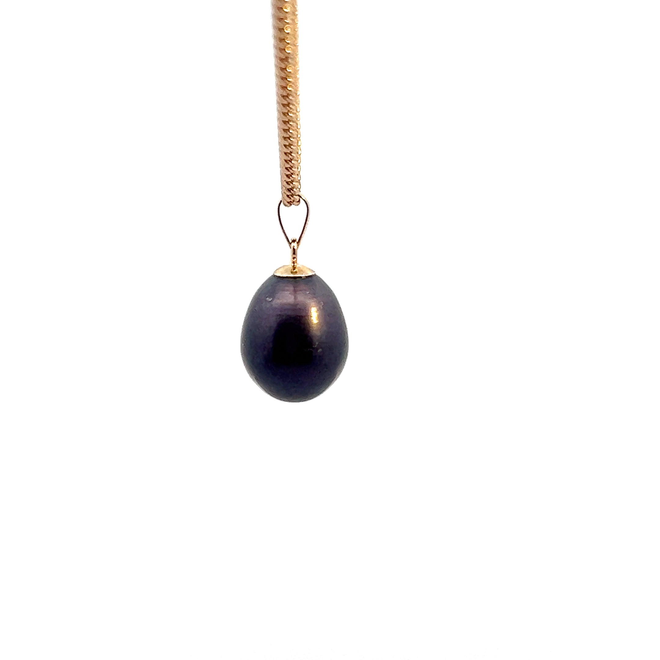 9ct Yellow Gold Black 10mm Freshwater Pearl Pendant