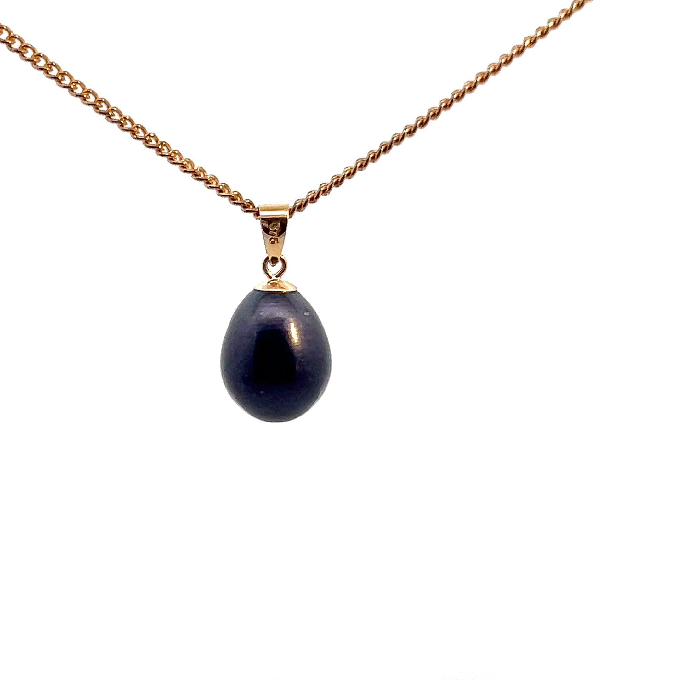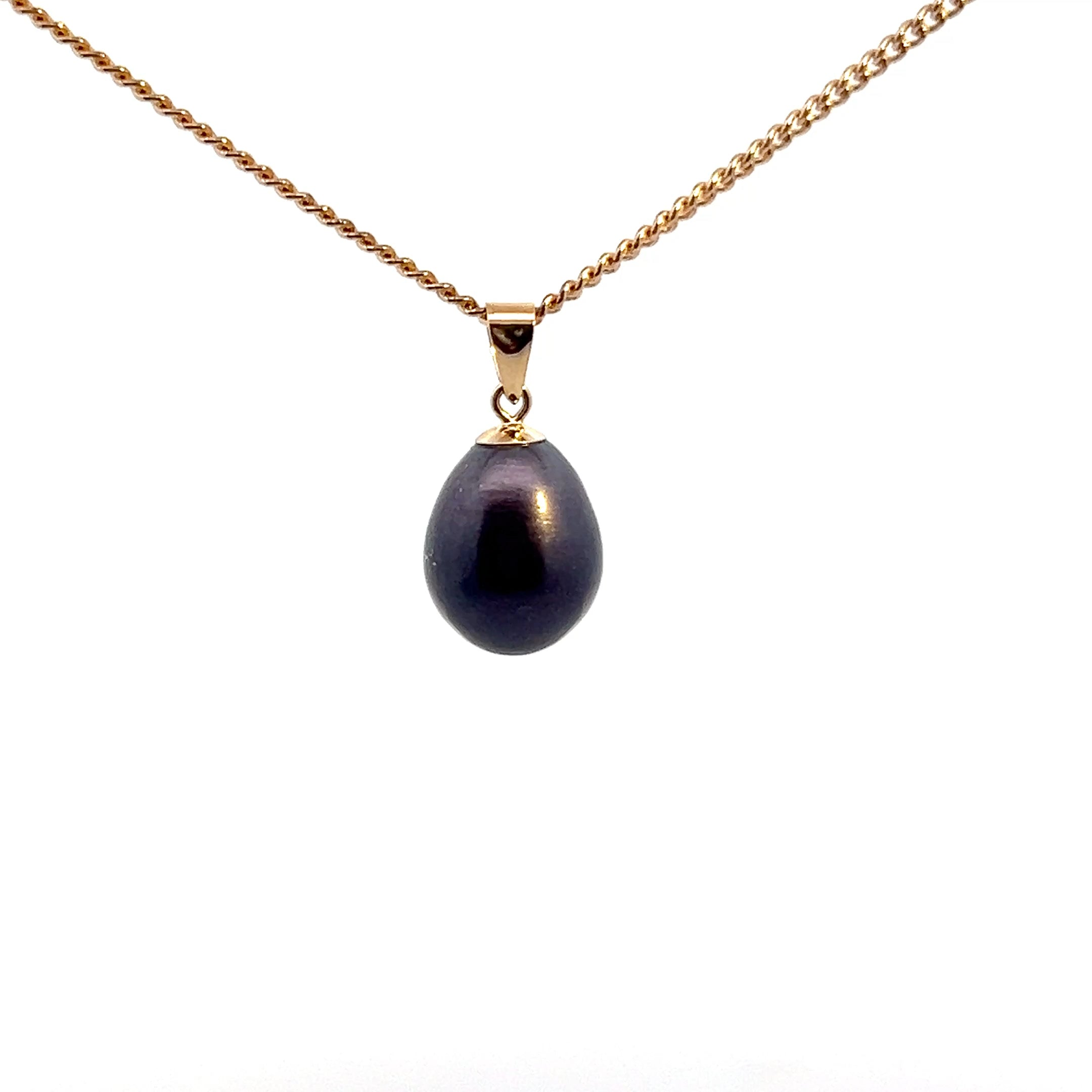 9ct Yellow Gold Black 10mm Freshwater Pearl Pendant