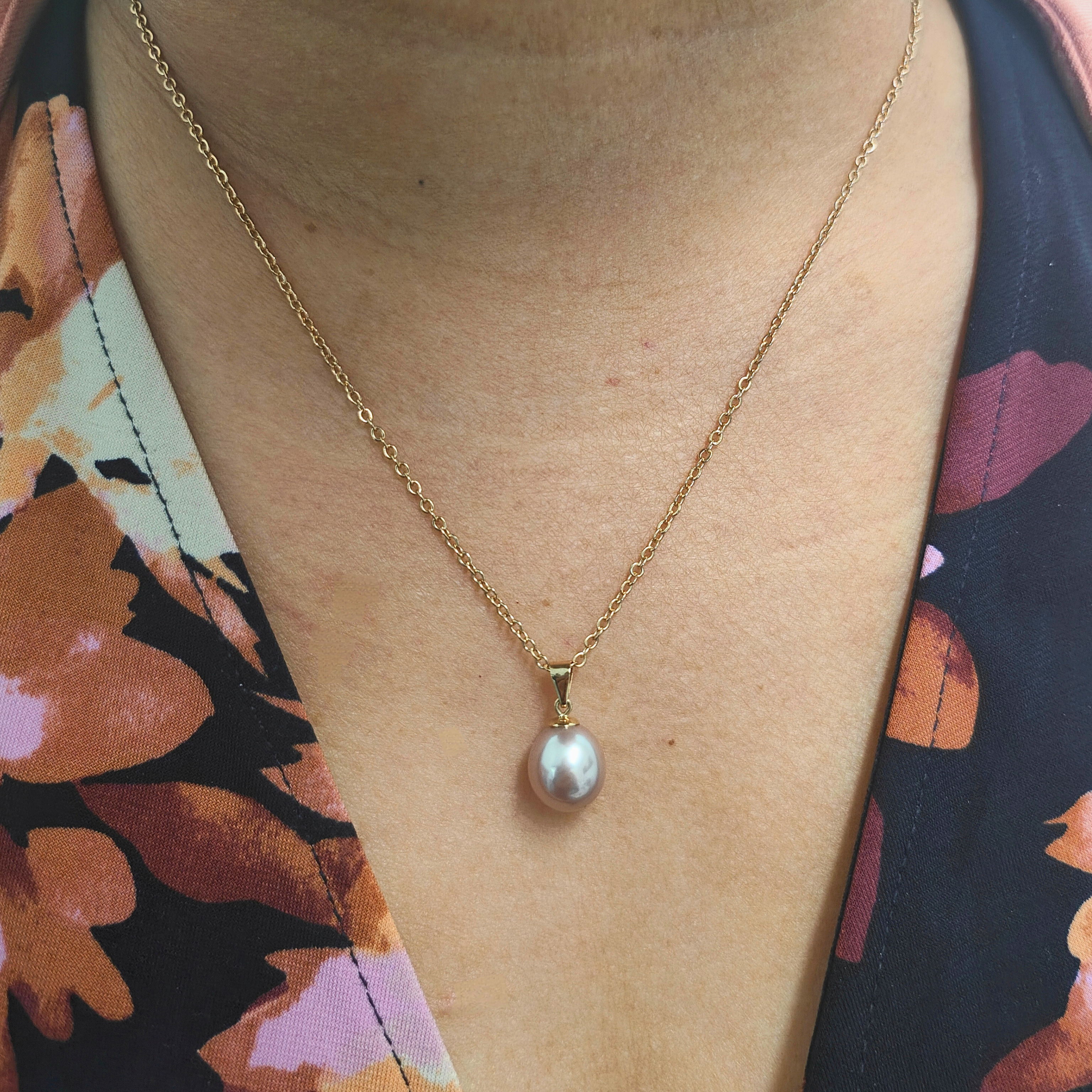 9ct Yellow Gold Pink Freshwater 10mm Pearl Pendant