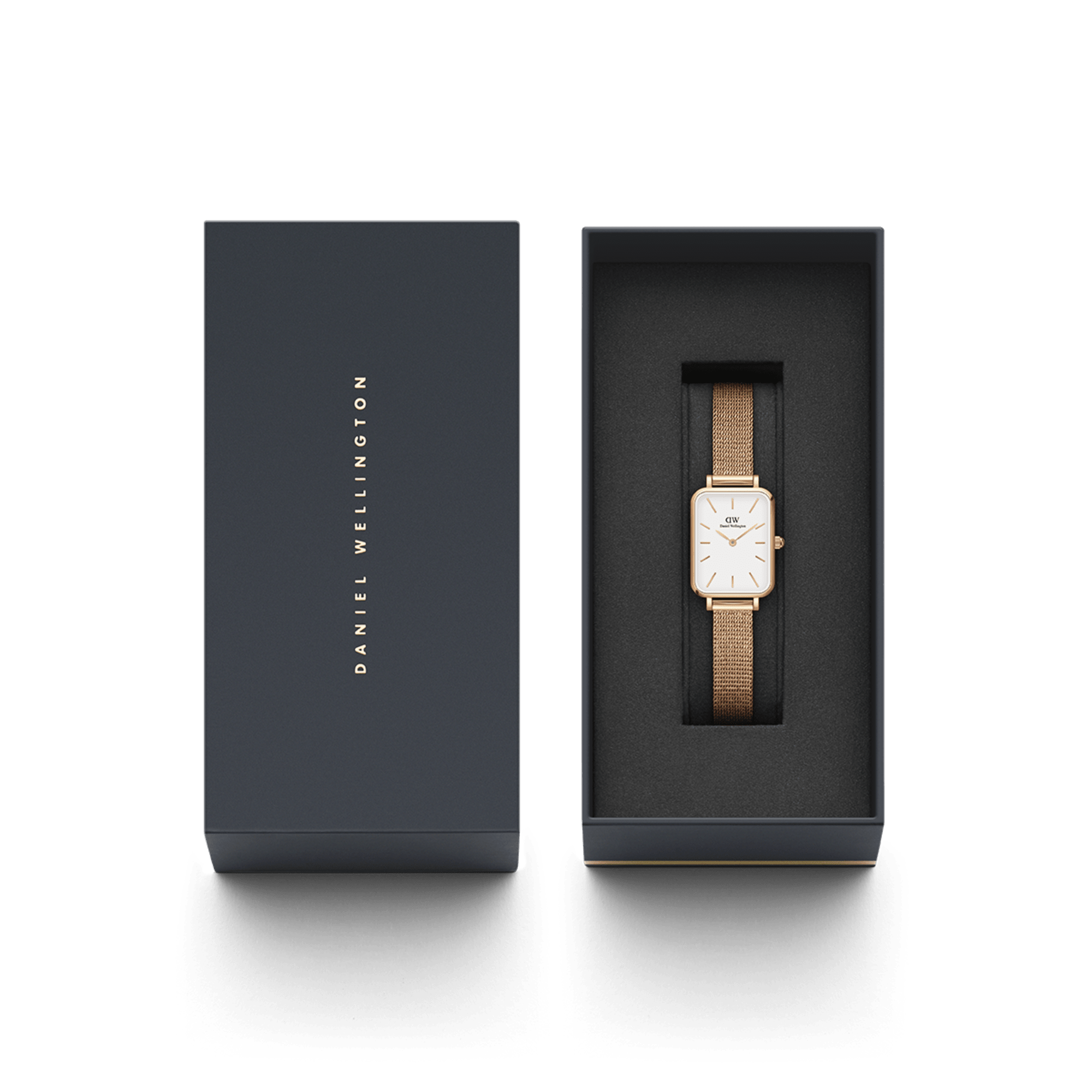 Daniel Wellington Quadro 20X26 Pressed Melrose Rose Gold & White Watch