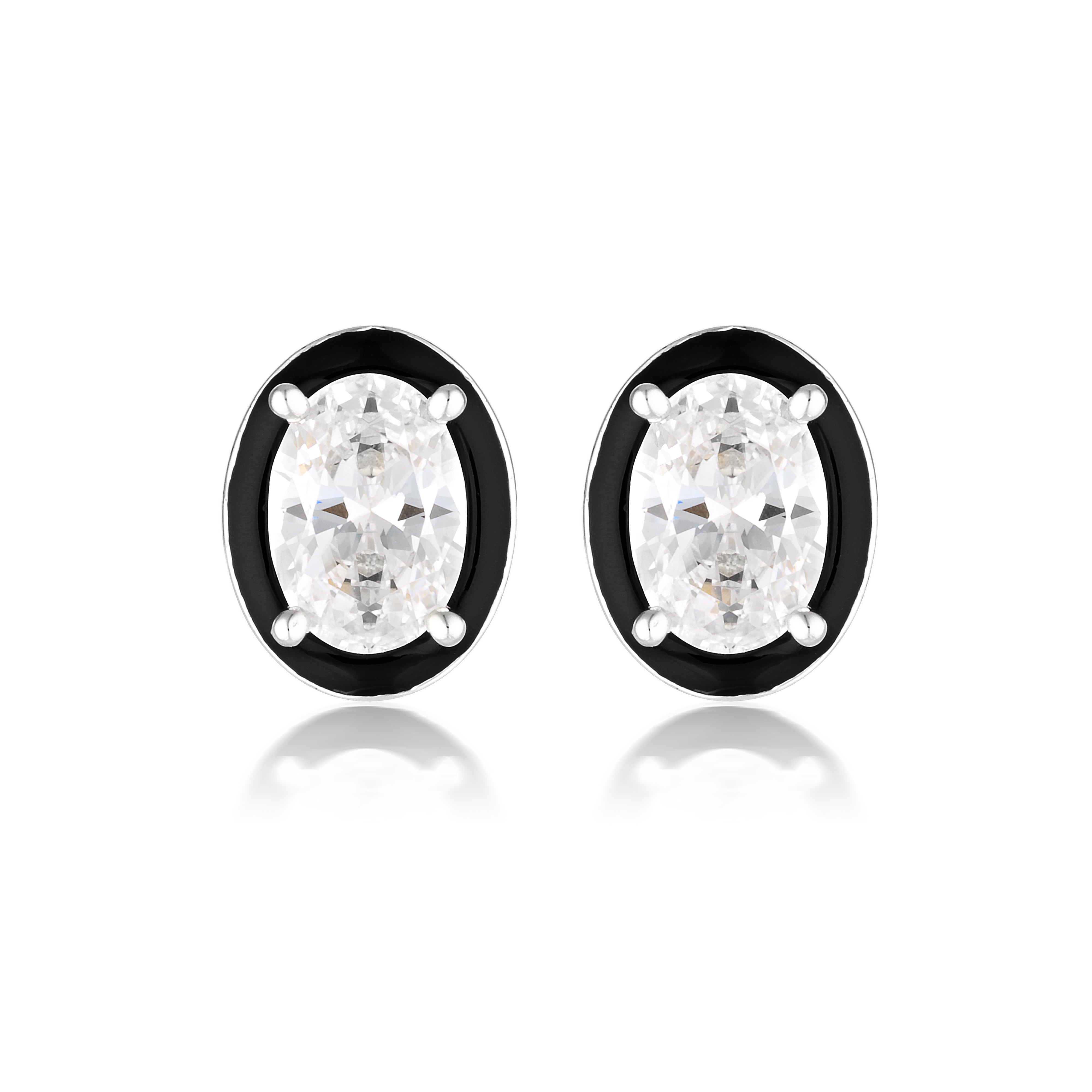 REFLECTION OVAL STUD EARRINGS SILVER & BLACK ENAMEL