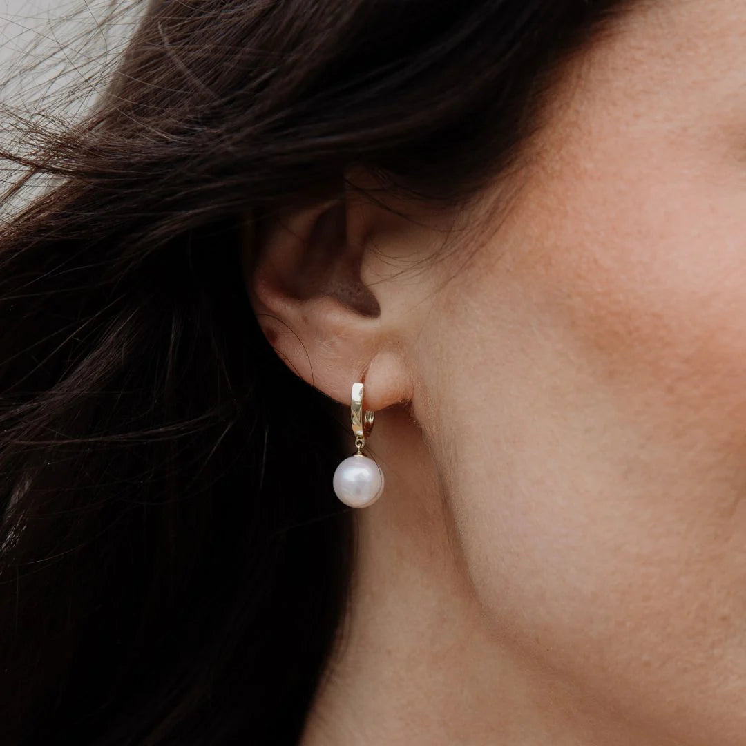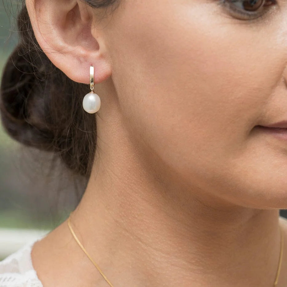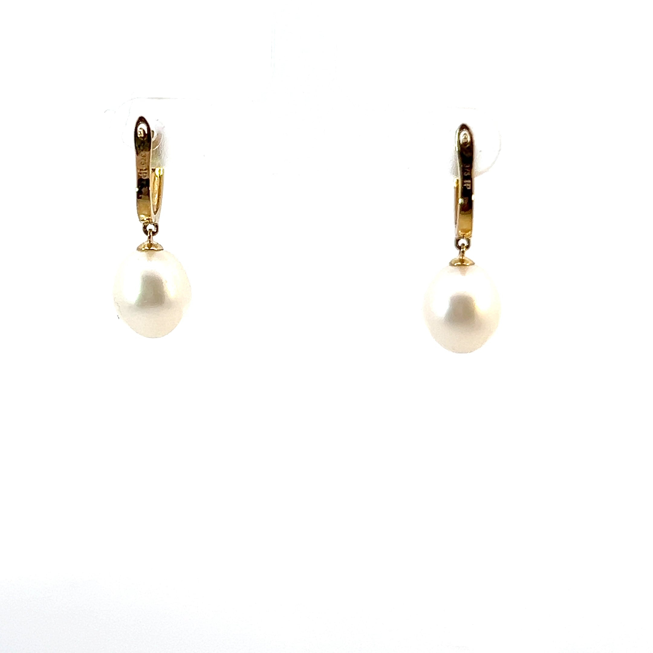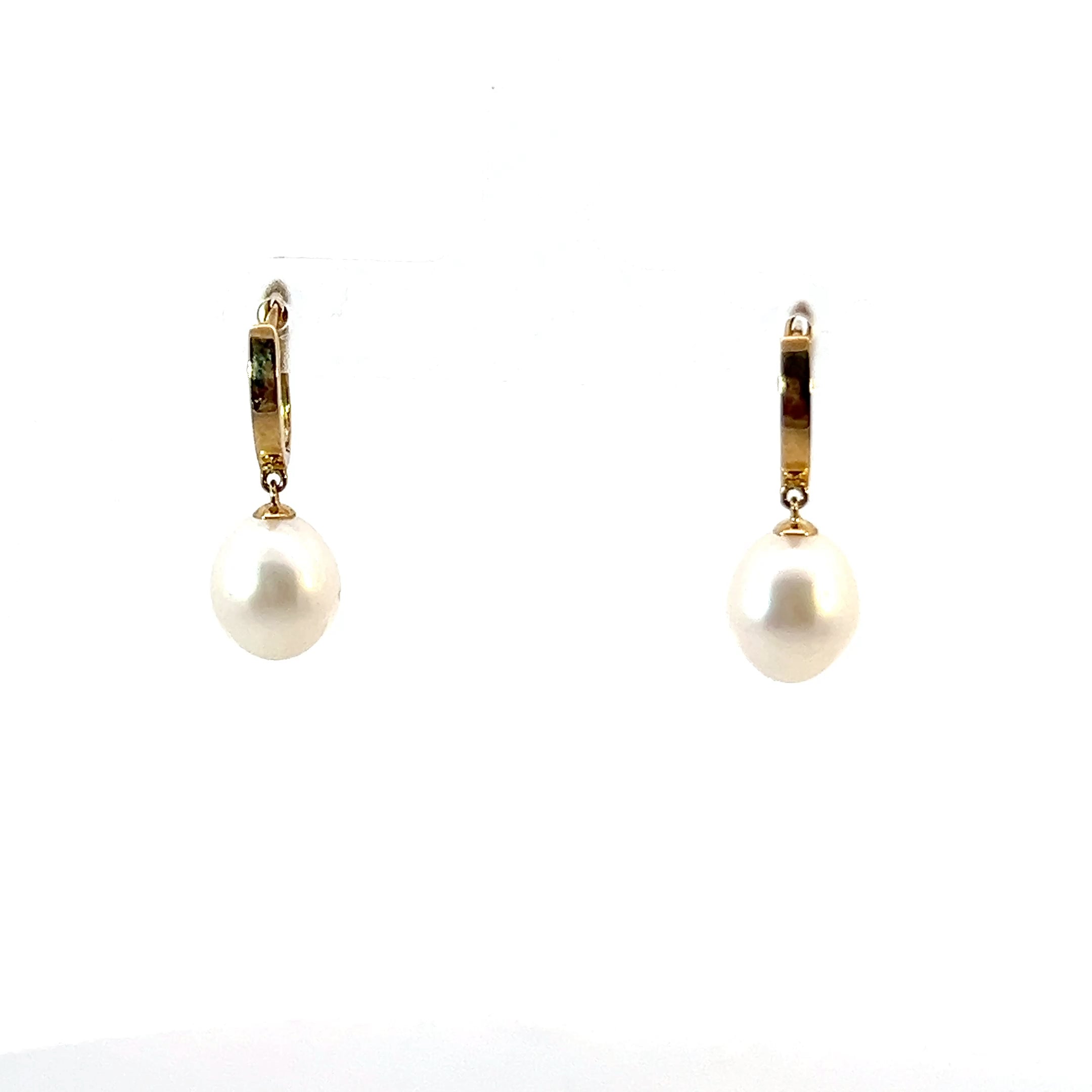 9ct Yellow Gold Dangling Pearl Hoop Earrings