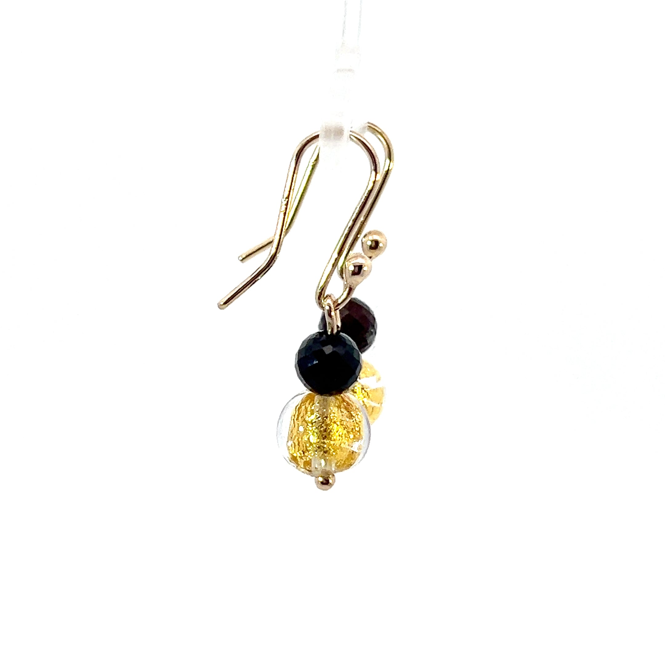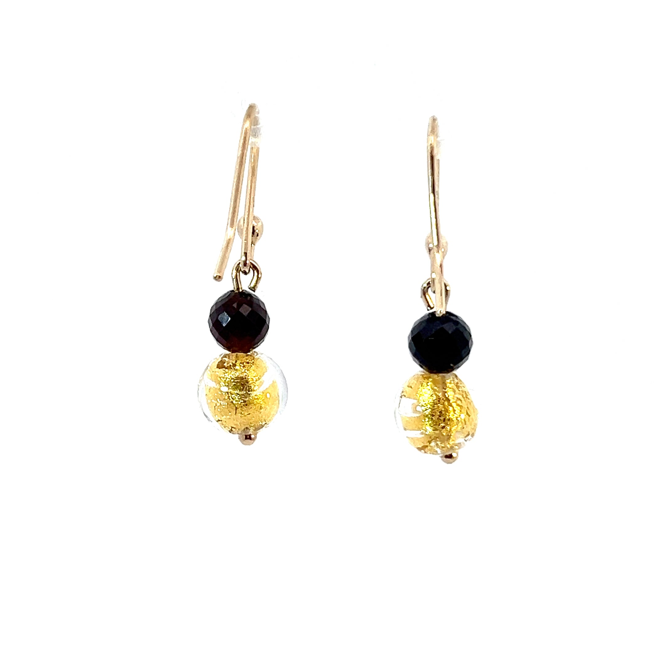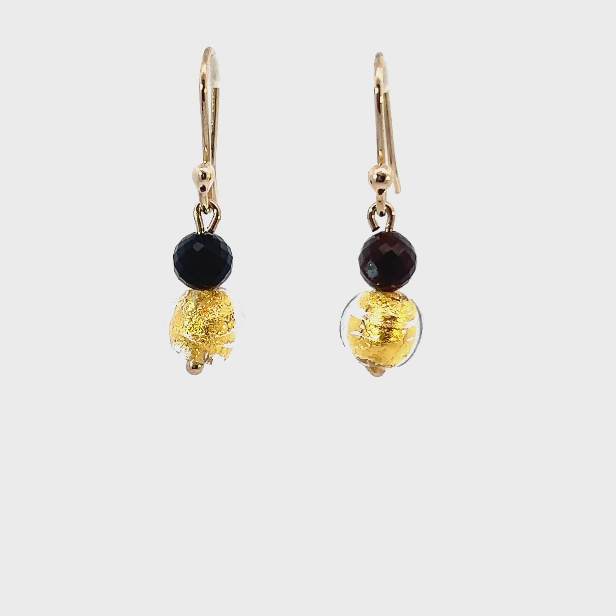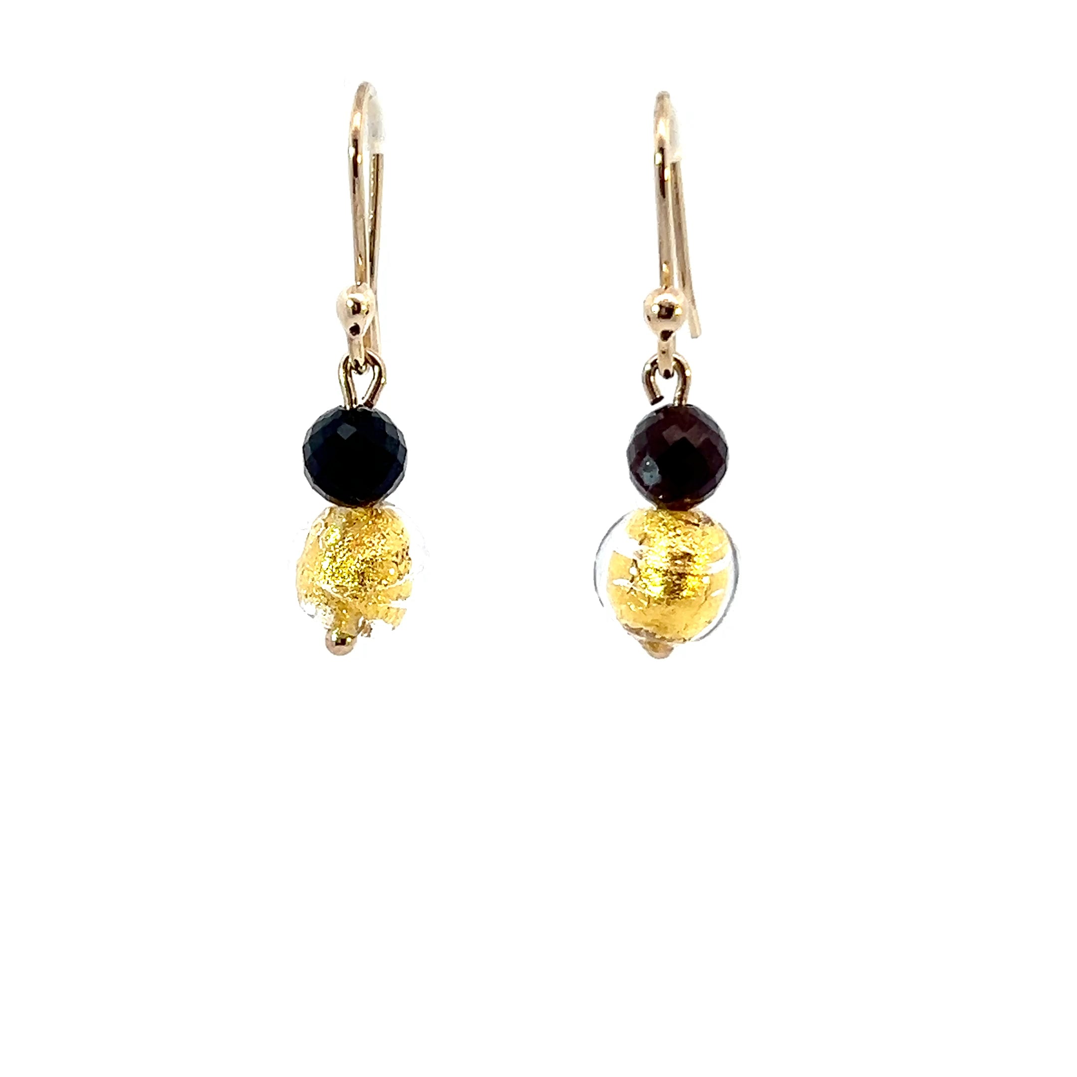 9ct Gold Murano Glass Black and Gold Ball Earrings