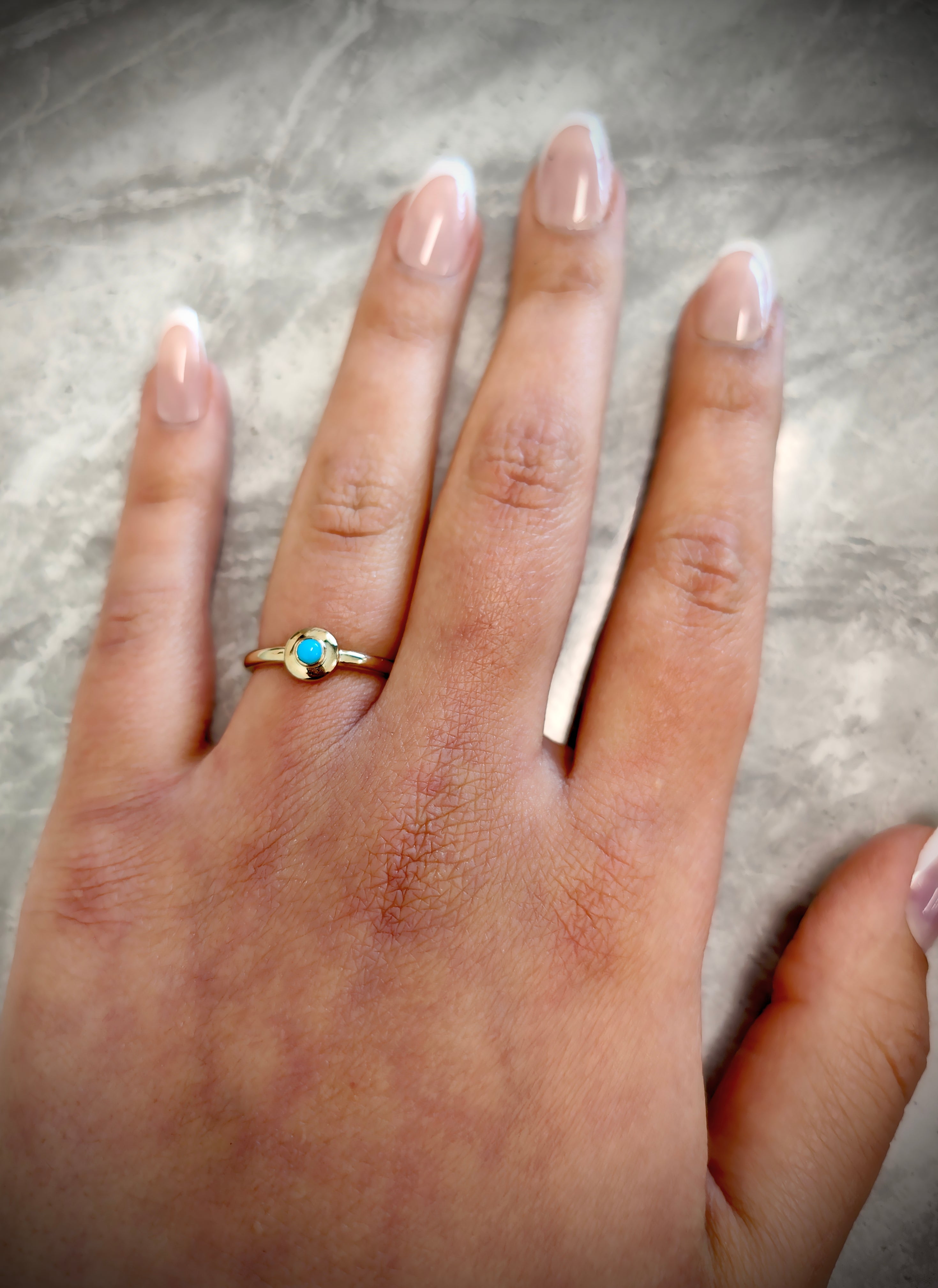 Elevate your style with this stunning 9ct Yellow Gold and Turquoise Eye Ring. Crafted from high-quality 9ct yellow gold, it offers lasting shine and durability. The vibrant turquoise stone adds a unique pop of color, symbolizing protection and tranquility. Its eye design makes it both a fashionable statement and a meaningful accessory, perfect for everyday wear or special occasions. This ring effortlessly combines elegance with a touch of mystique, making it an ideal addition to any jewelry collection or a thoughtful gift for someone special.