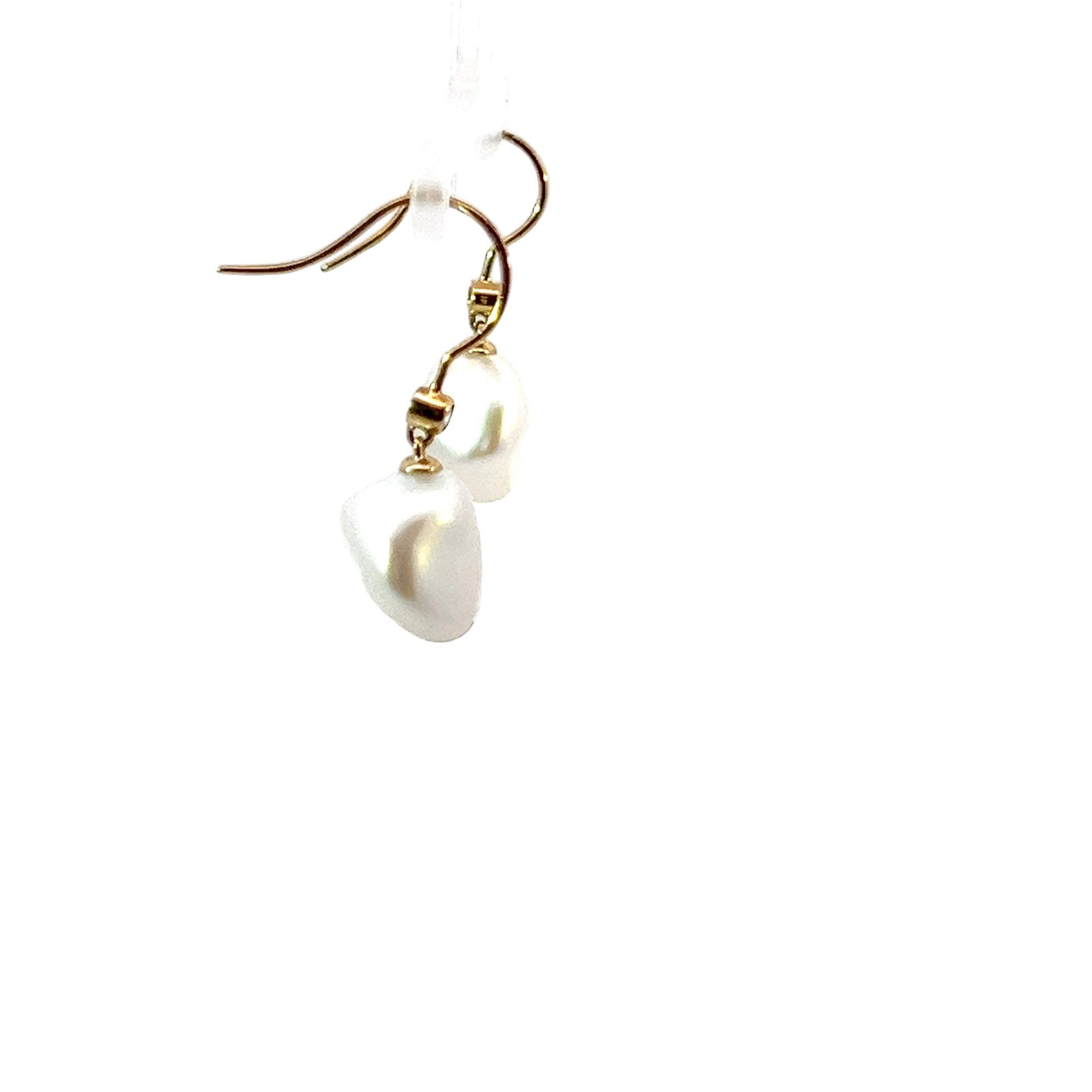 9ct Yellow Gold Keshi Pearl Hook Earrings with Diamond