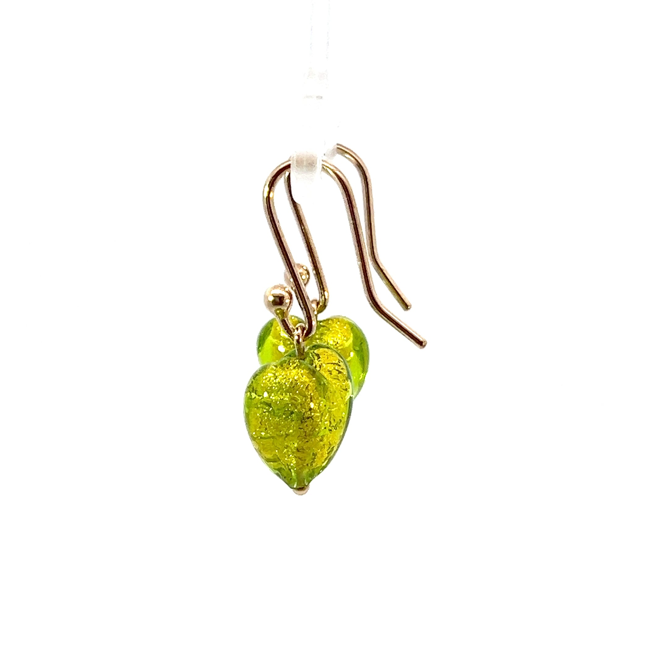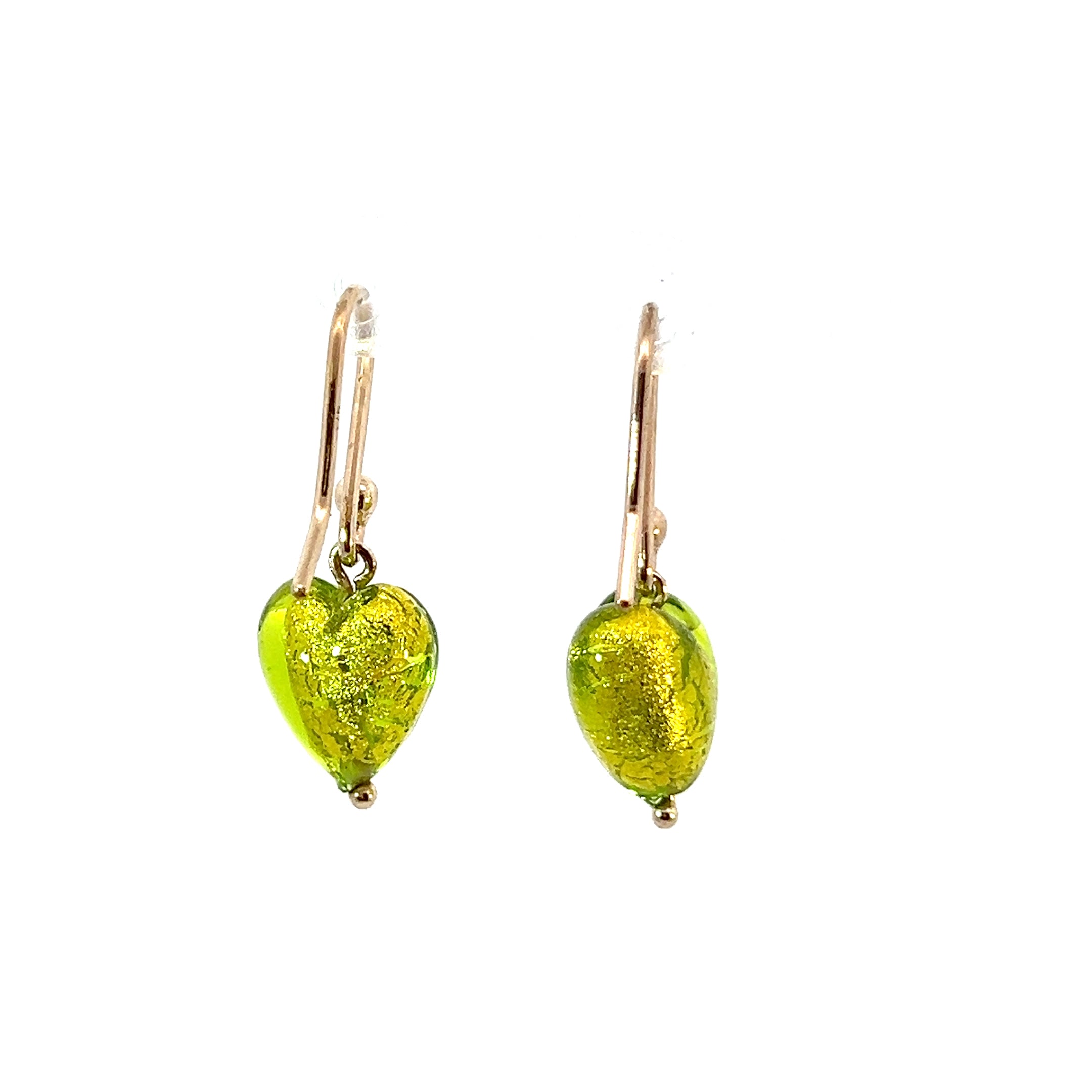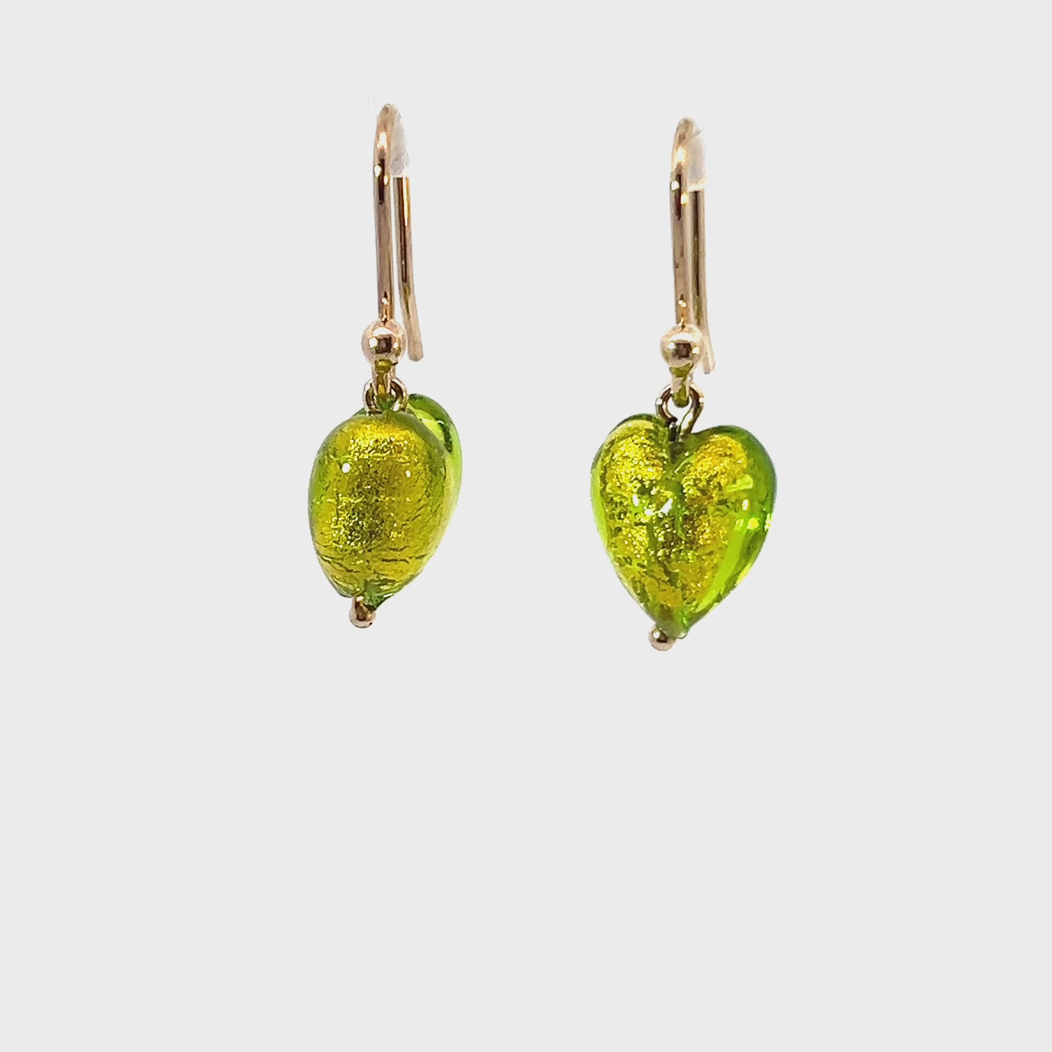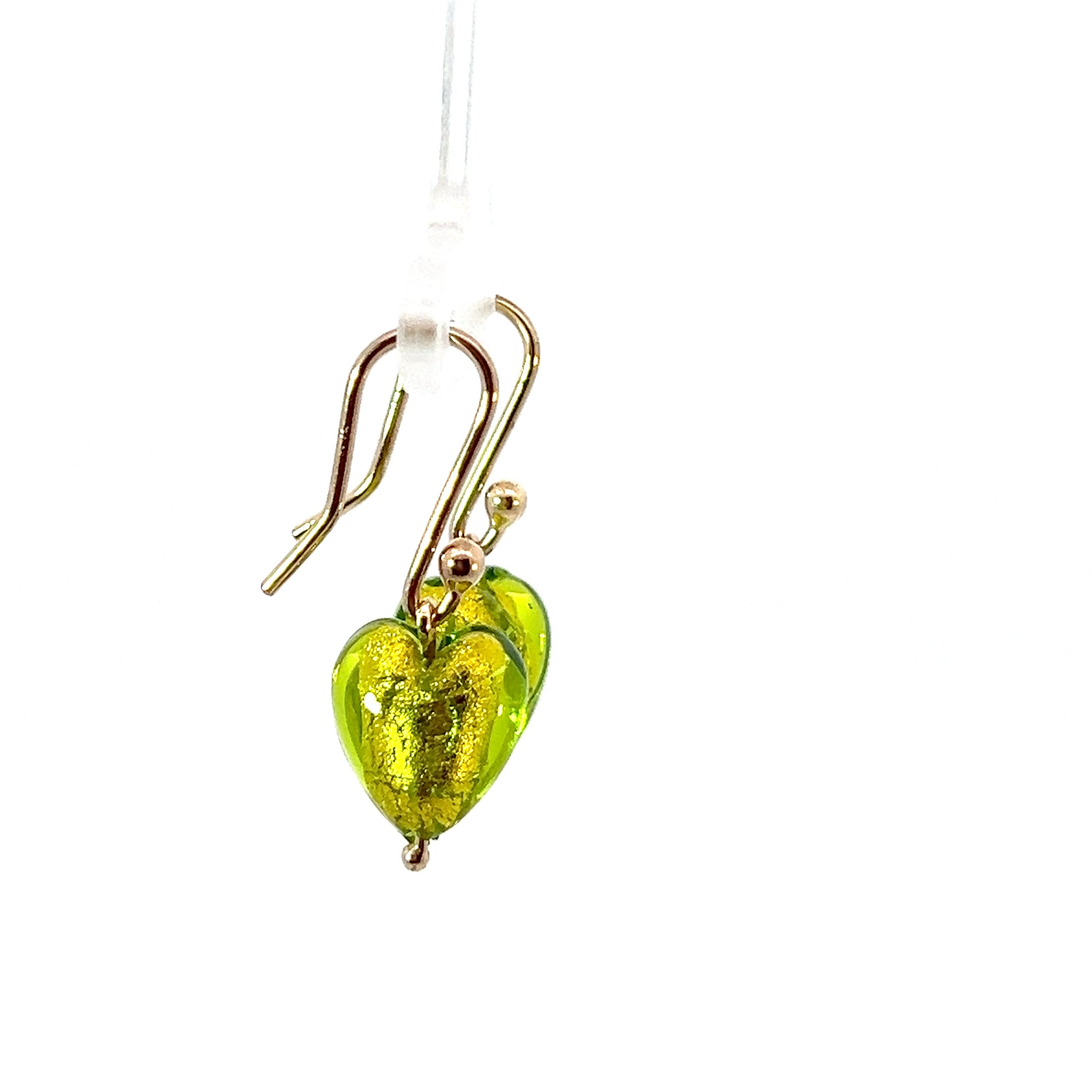 9ct Gold Green Hearts Murano Glass Earrings