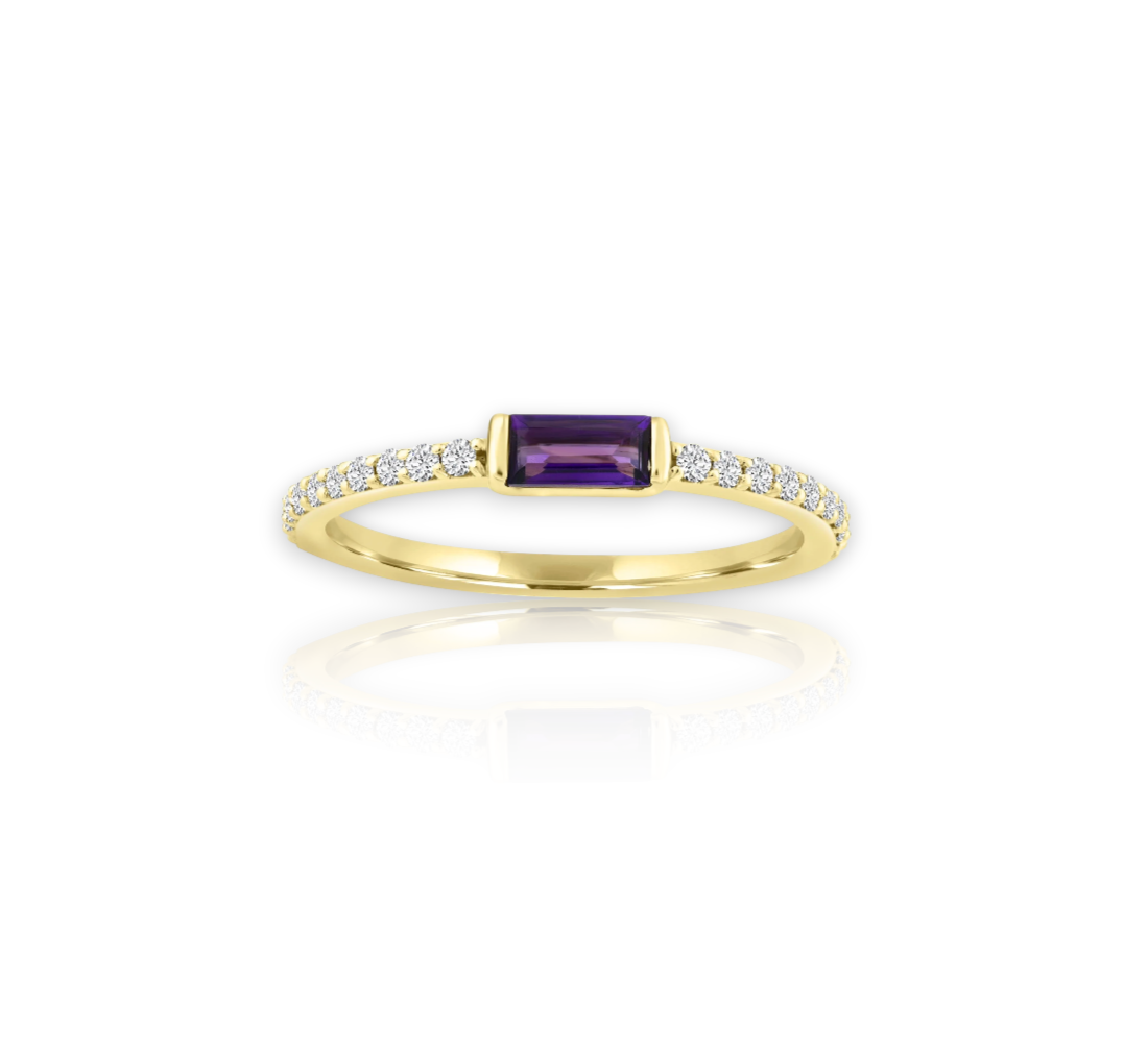 0.16ct HI I1 Diamond and Amethyst Ring in 9K Yellow Gold