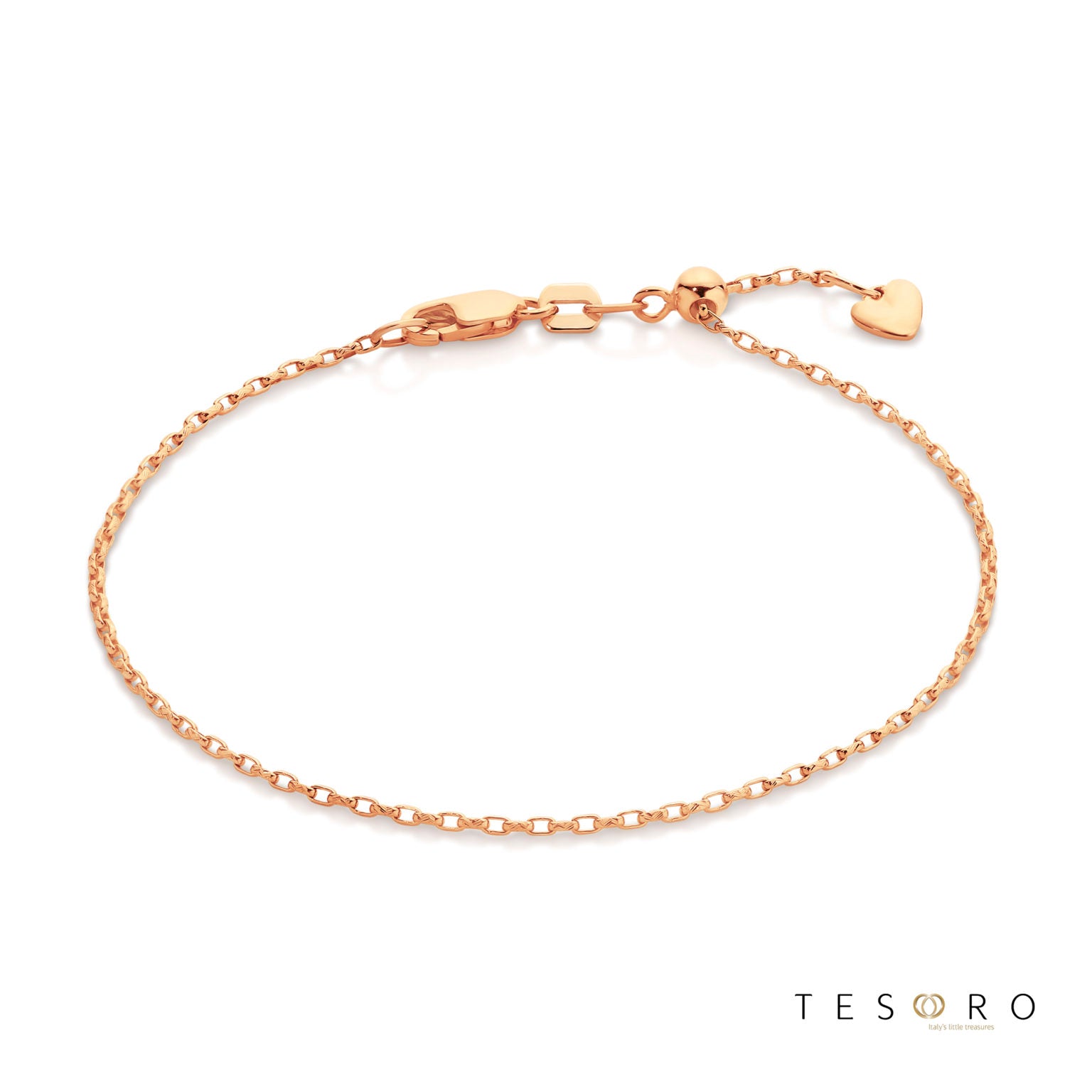 9kt Rose Gold Abruzzo Adjustable 1.3mm Oval Belcher Bracelet, 18cm Length