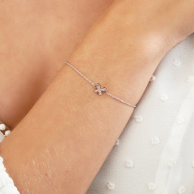 A delicate blend of natural Australian Argyle pink diamonds with fine white diamonds. Crafted in 18ct rose and white gold.