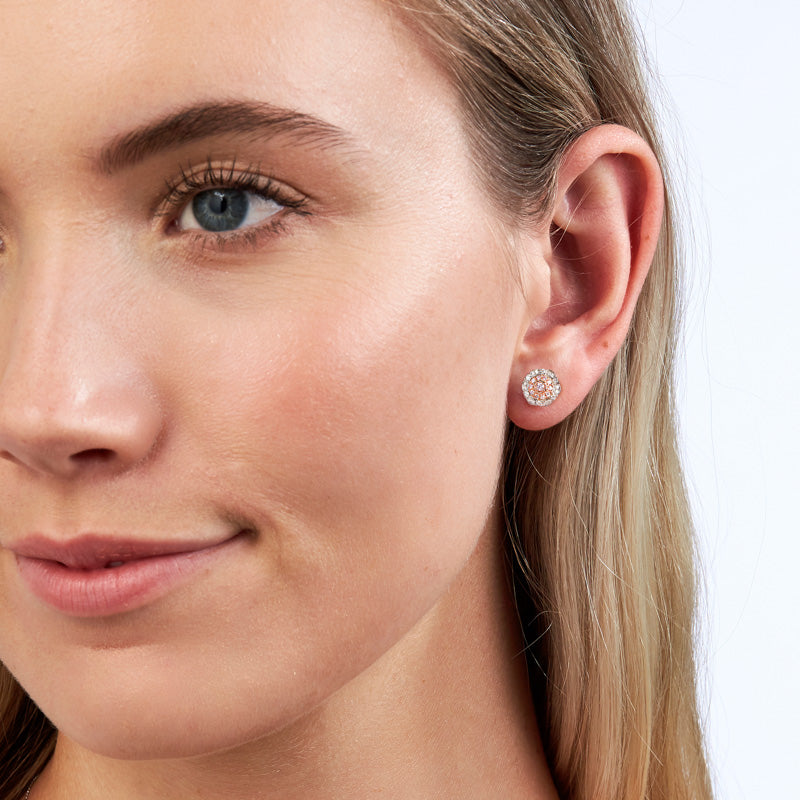 A pair of wonderfully rounded floral earrings featuring Argyle pink diamonds and fine white diamonds. Crafted in 18ct rose and white gold.