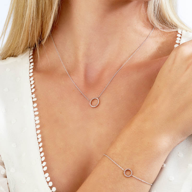 A stunning circle of natural Australian Argyle pink diamonds set on a delicate strand of 18ct white gold.