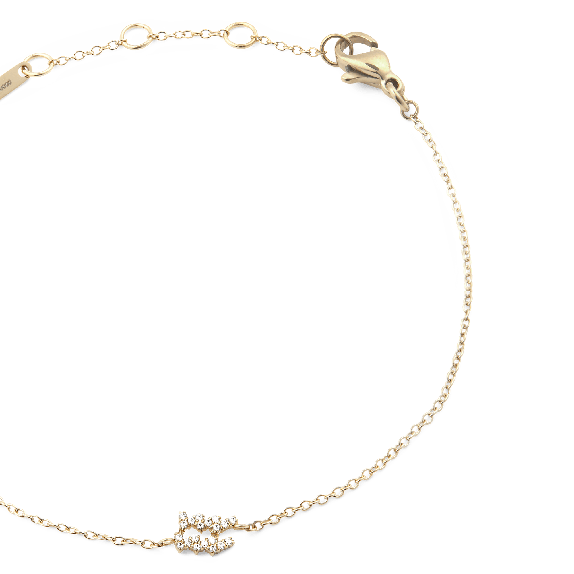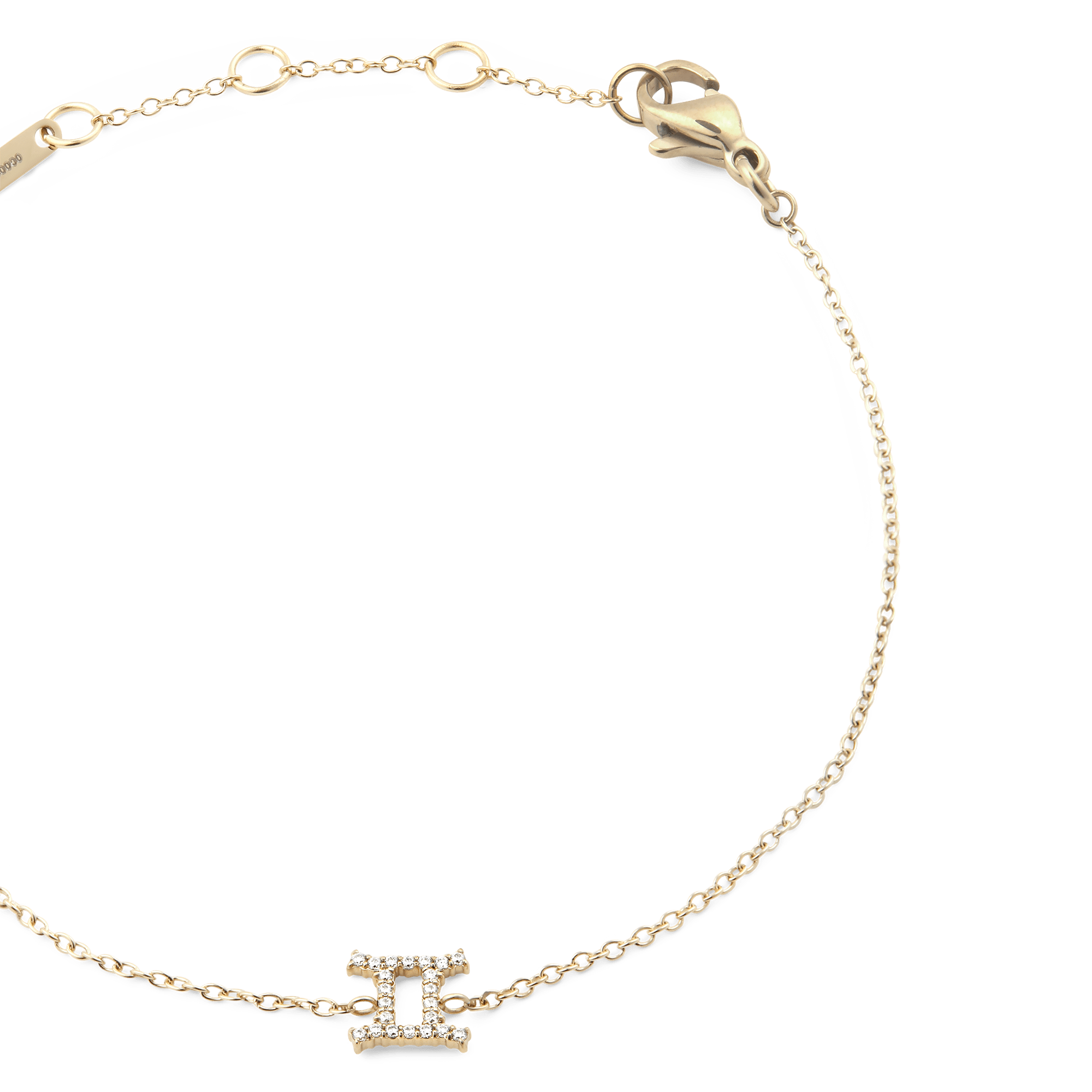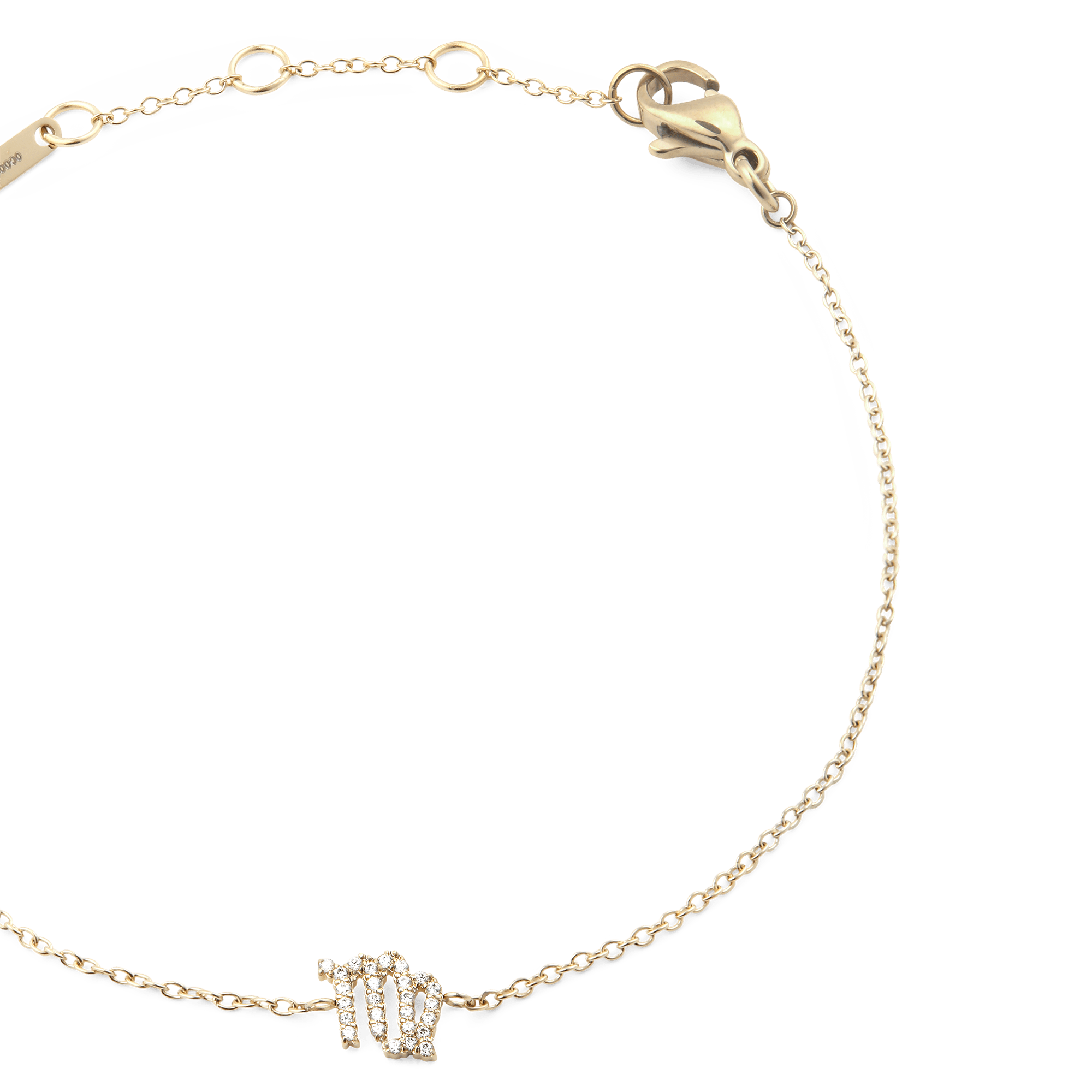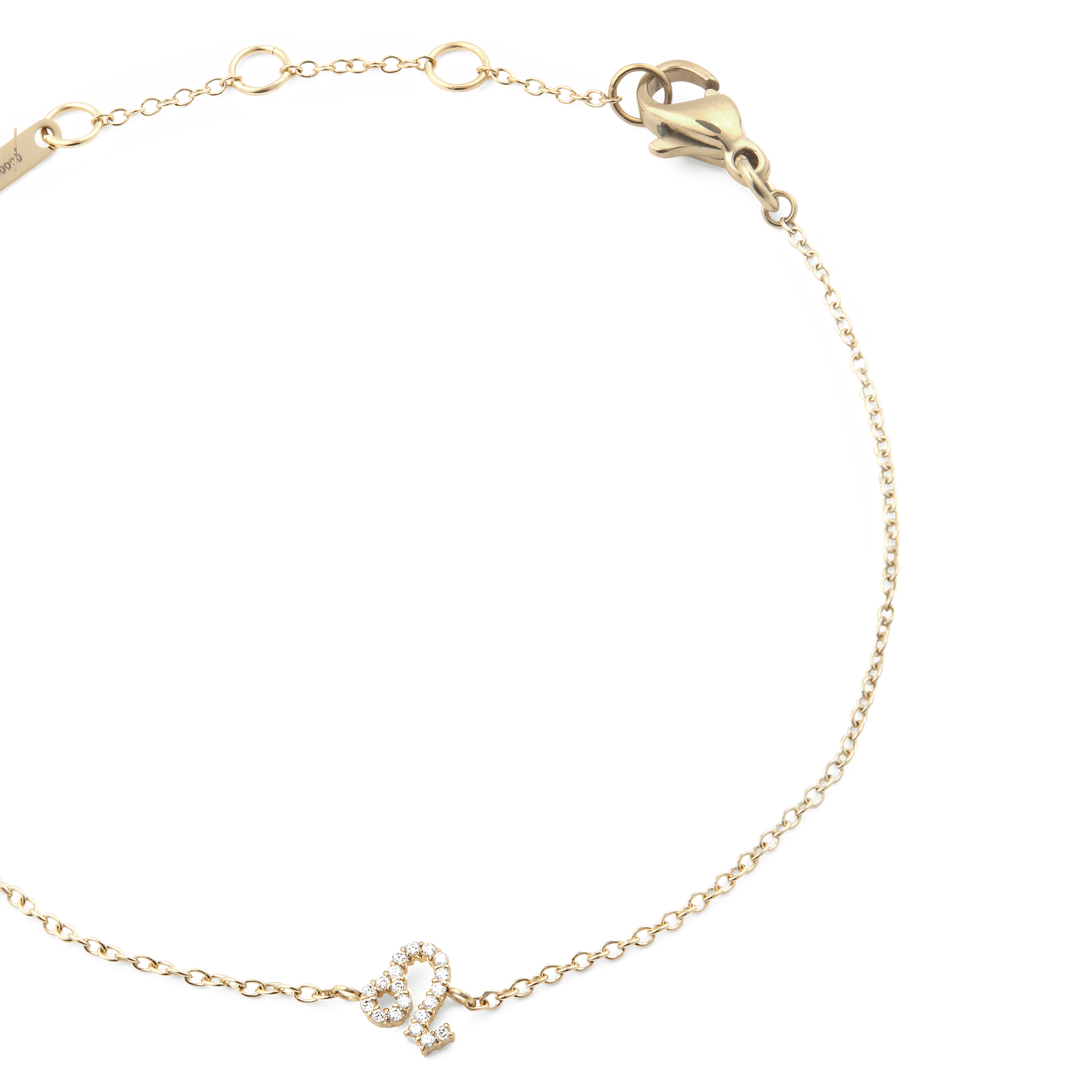 Take this as a sign from the stars: it’s time to add some celestial energy to your look. This gold bracelet features a thin, elegant chain with a fixed crystal zodiac pendant. Every crystal on the pendant is hand-set using a claw setting technique, and the chain comes equipped with sizing rings for an adjustable length.