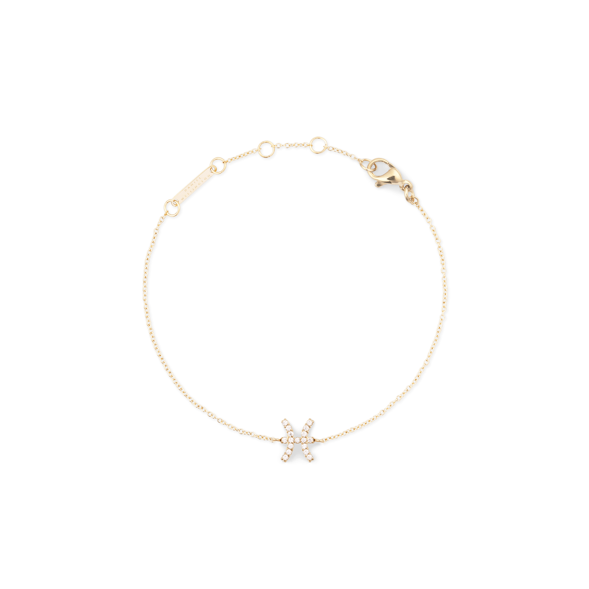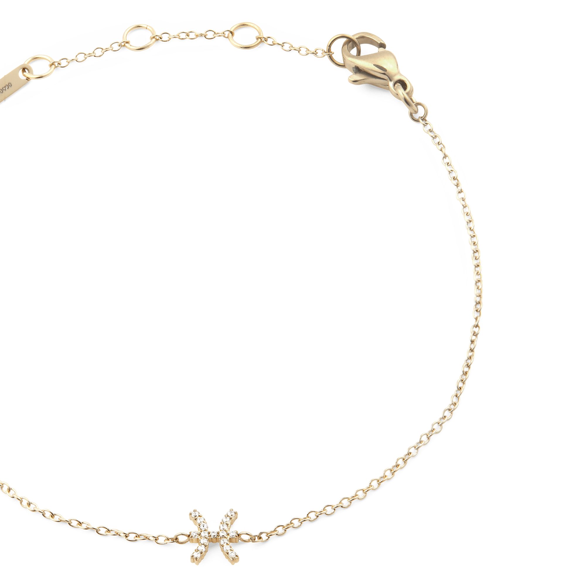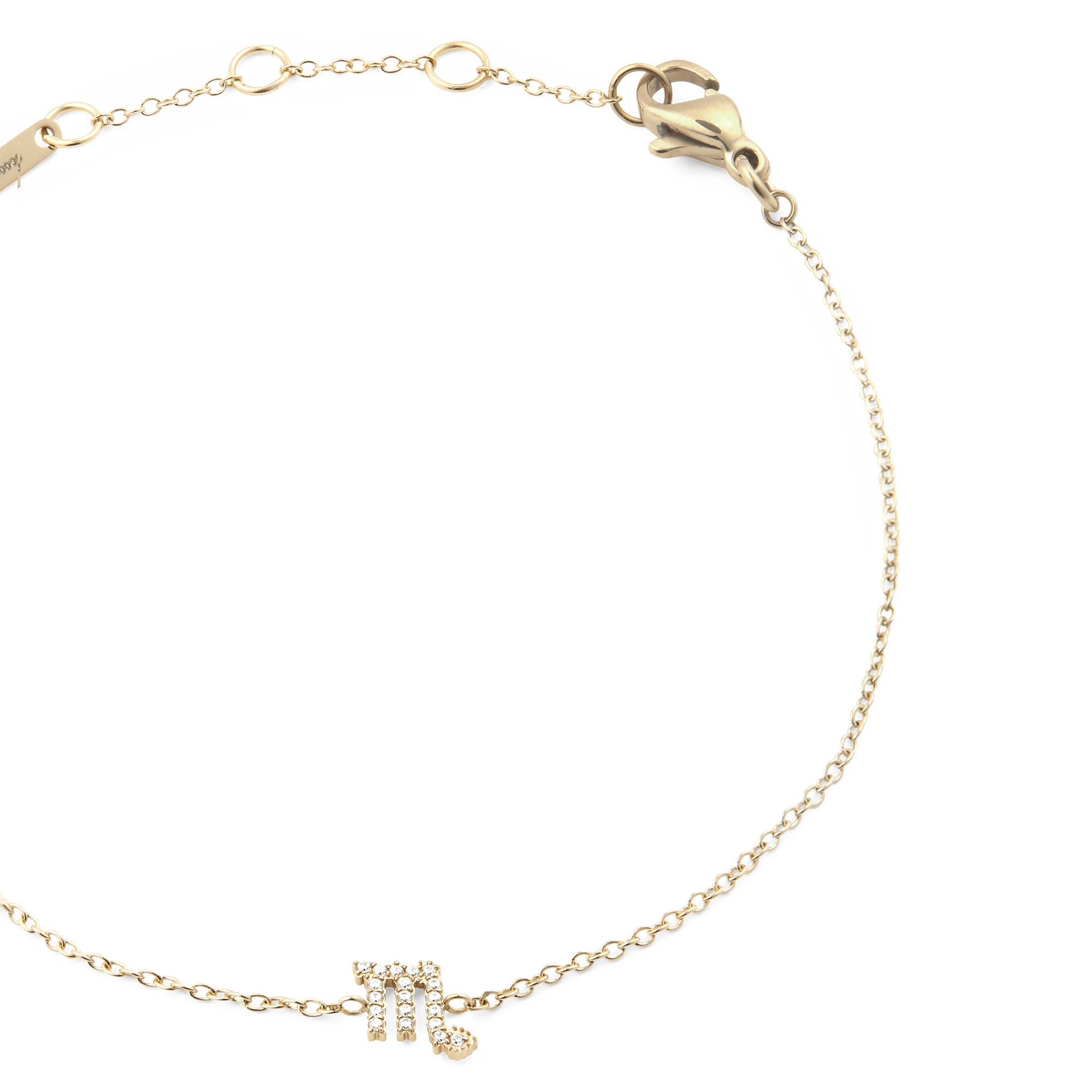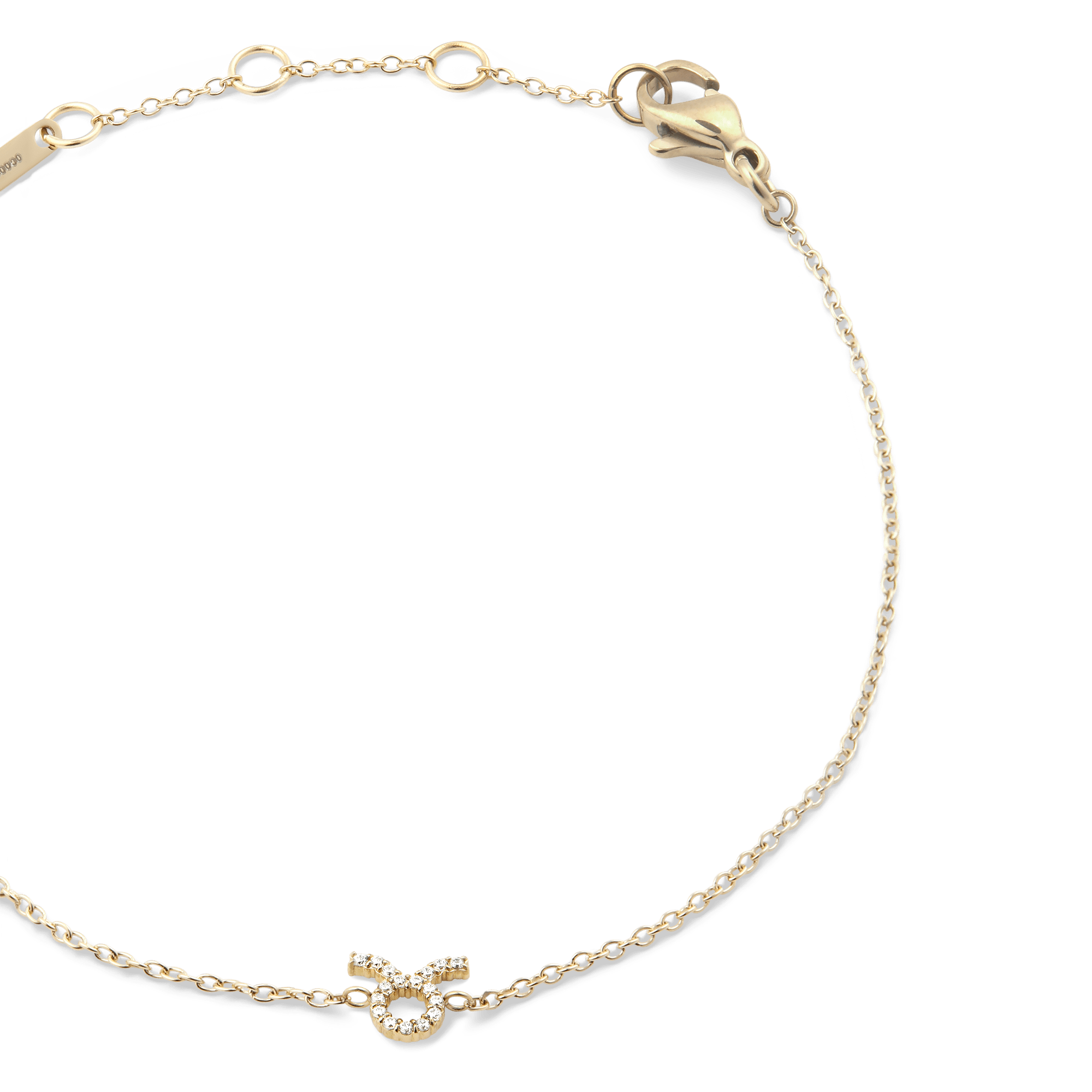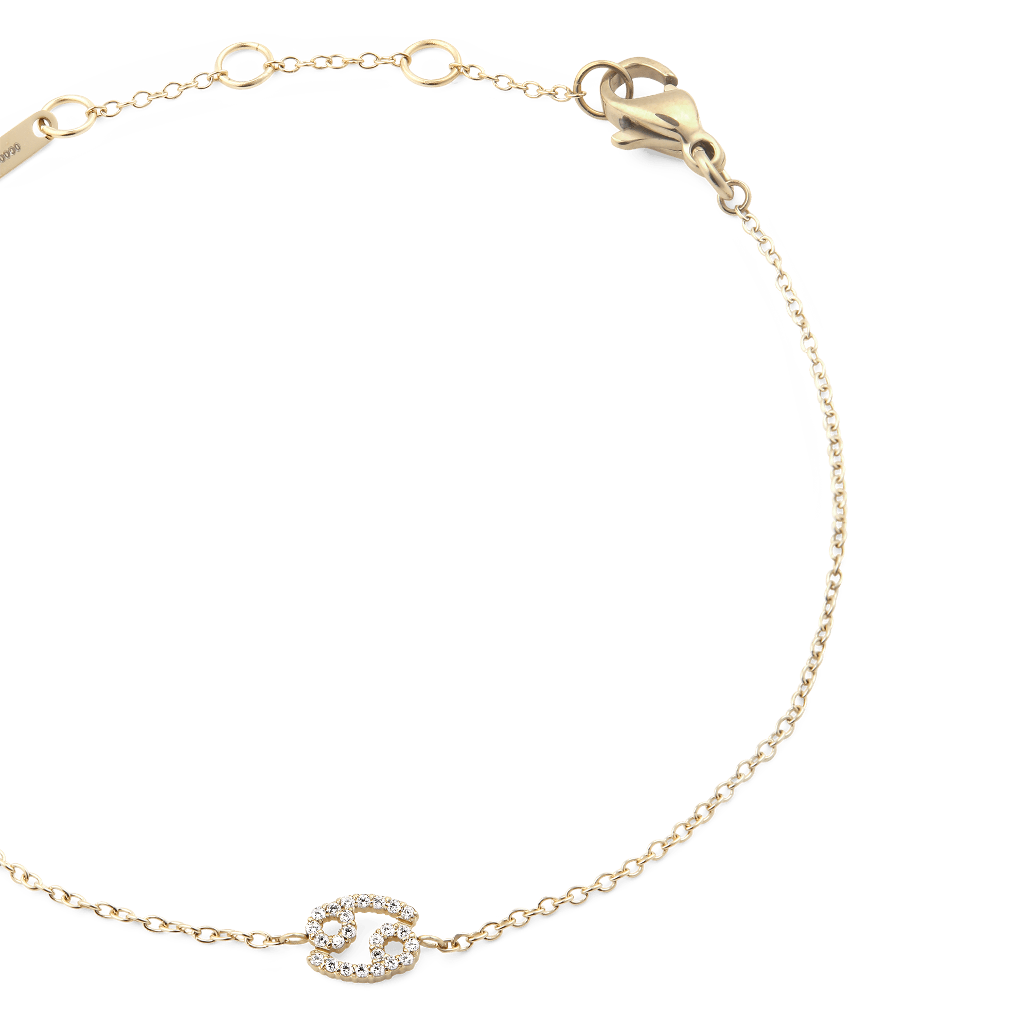 Take this as a sign from the stars: it’s time to add some celestial energy to your look. This gold bracelet features a thin, elegant chain with a fixed crystal zodiac pendant. Every crystal on the pendant is hand-set using a claw setting technique, and the chain comes equipped with sizing rings for an adjustable length.