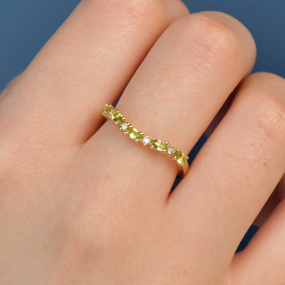 The perfect pairing for any engagement ring or stylish pop of colour, this curved band features interchanging diamonds and Australian marquise yellow sapphires, complimentary to many different stone colours and shapes.