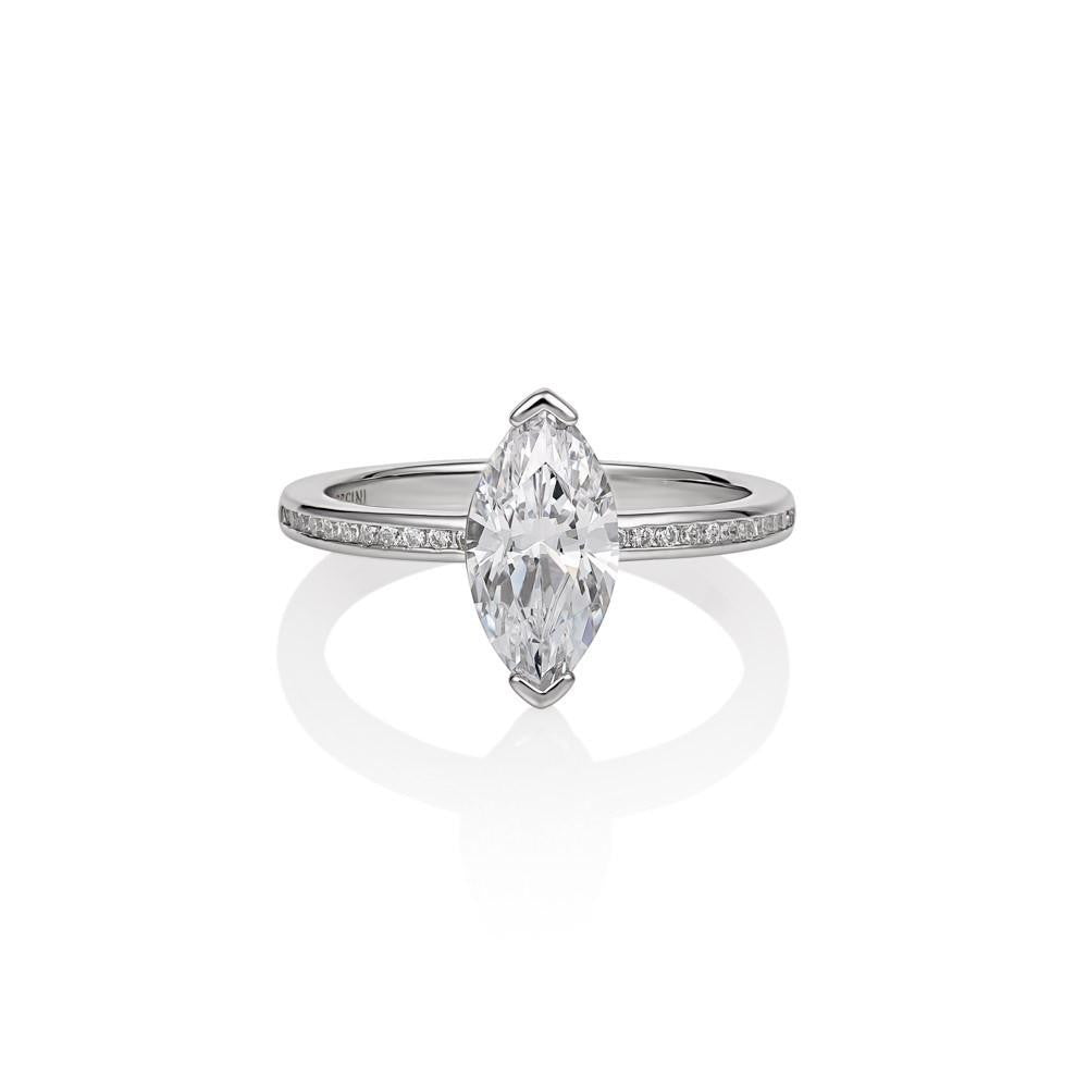 Simple and chic the Forever Ring highlights the simplicity of the marquise stone. A 12mm by 6mm stunning Marquise is set in simple V prong and complimented with a sparkling channel set band. This piece articulates understated style. Crafted in 925 sterling silver and Rhodium plated.