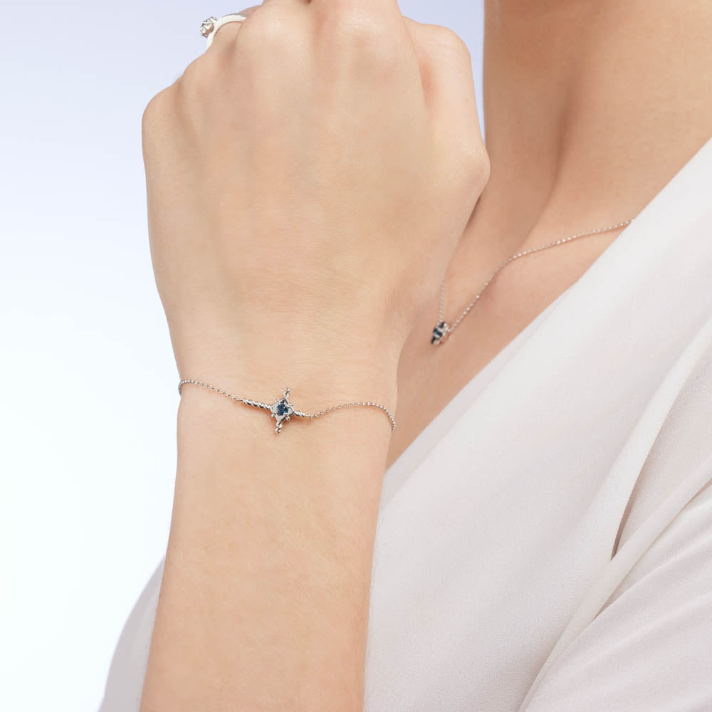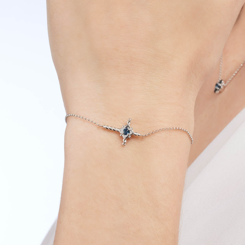 Simple and sweet, our Jolene Bracelet is a rope-twist cross design featuring a single stunning Australian Sapphire within soft, rounded petals. Our bracelet is made to fit all wrists with three different anchor points. Jolene is crafted in 9ct Rose, White or Yellow Gold.
