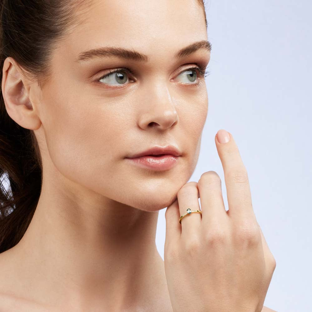 Add a pop of colour to your fingers with our gorgeous Jolie Ring, crafted in durable 18ct Yellow Gold. Featuring a gorgeous oval shaped Teal Australian Sapphire, secured in a Yellow Gold claw, and with exquisite natural White Diamonds on each side, Jolie makes for the perfect touch of subtle glamour to your look.