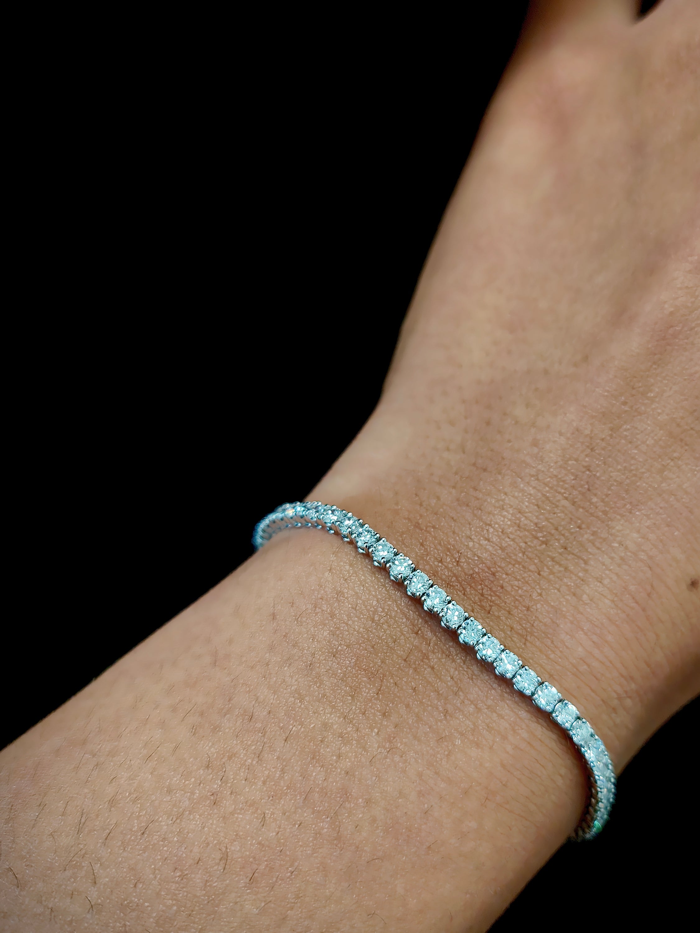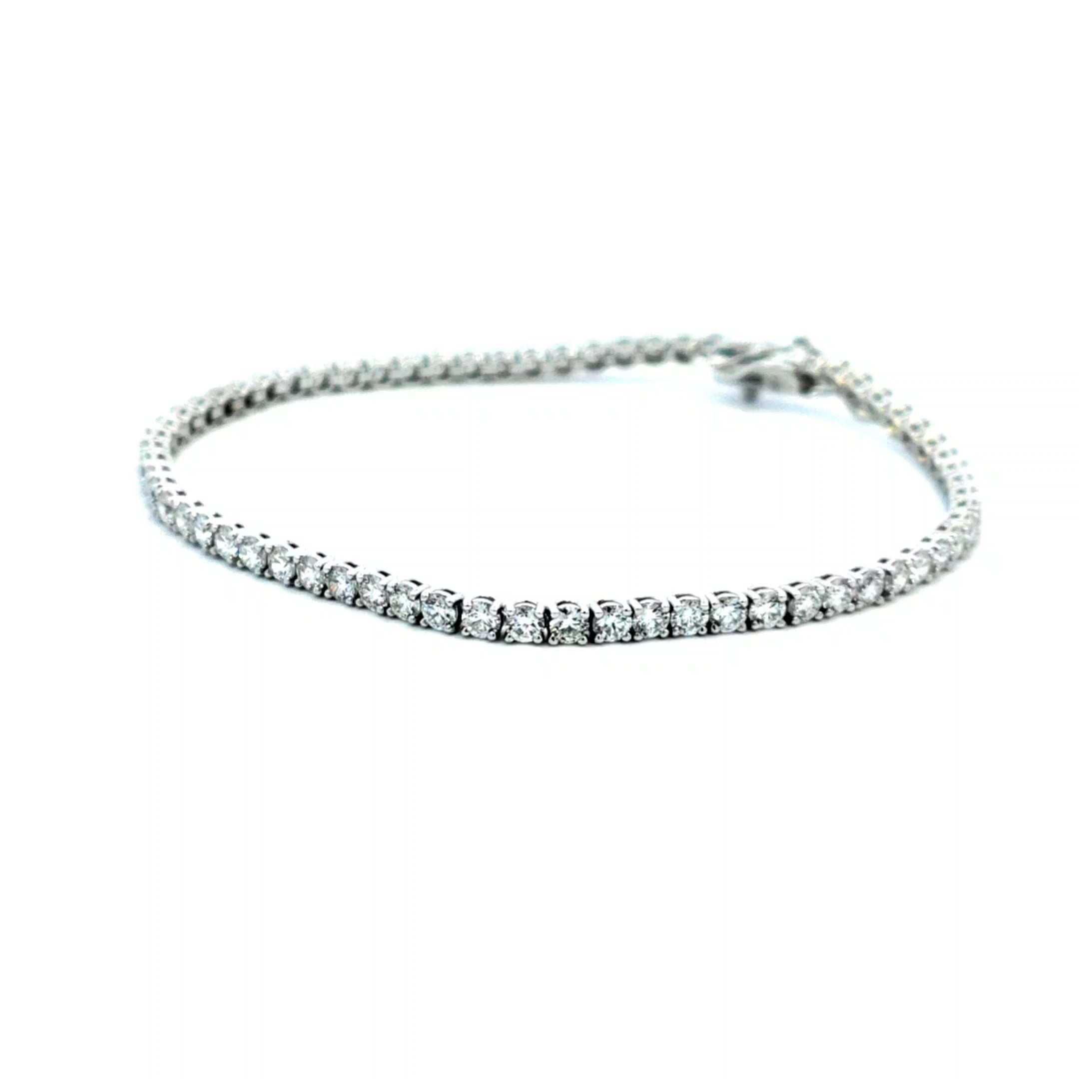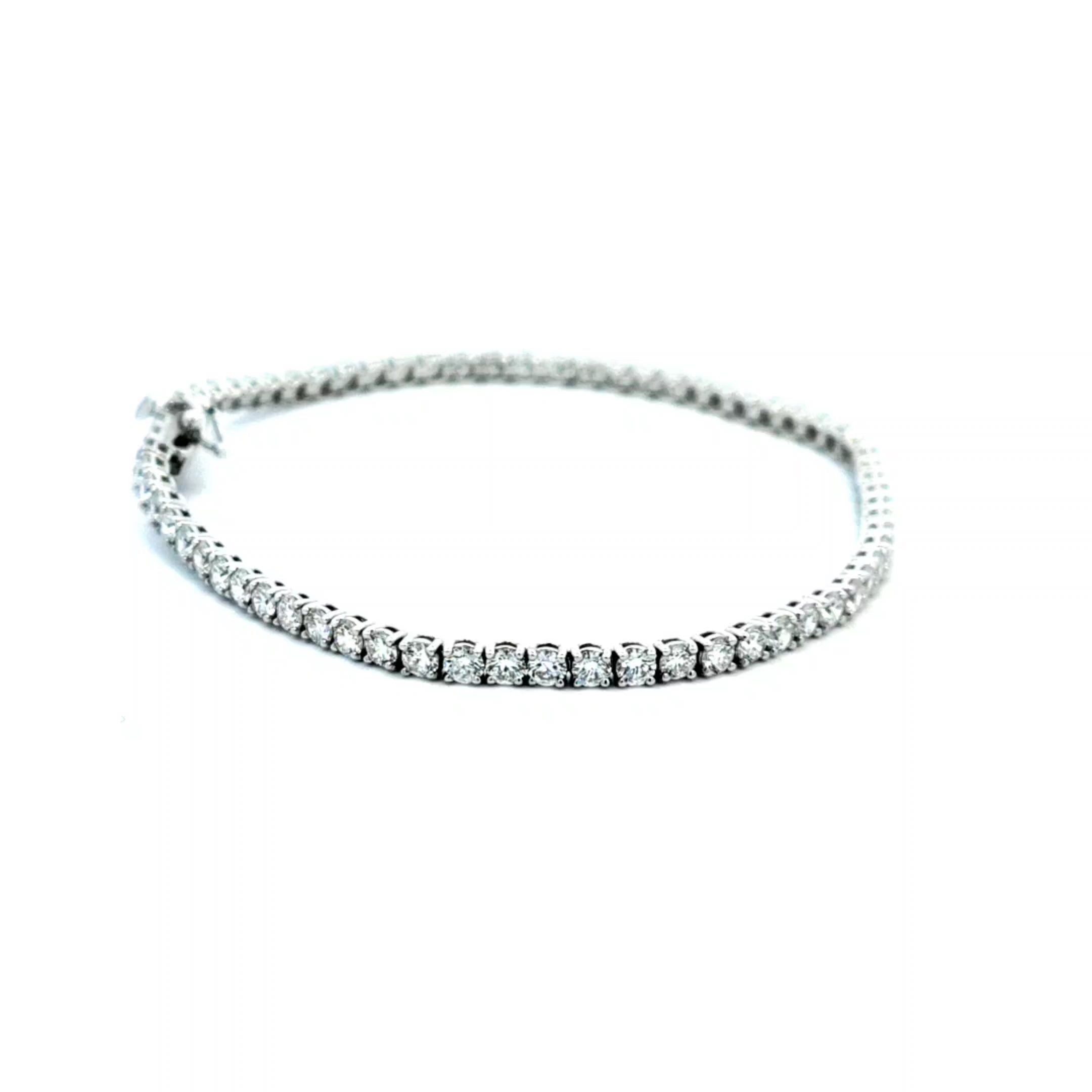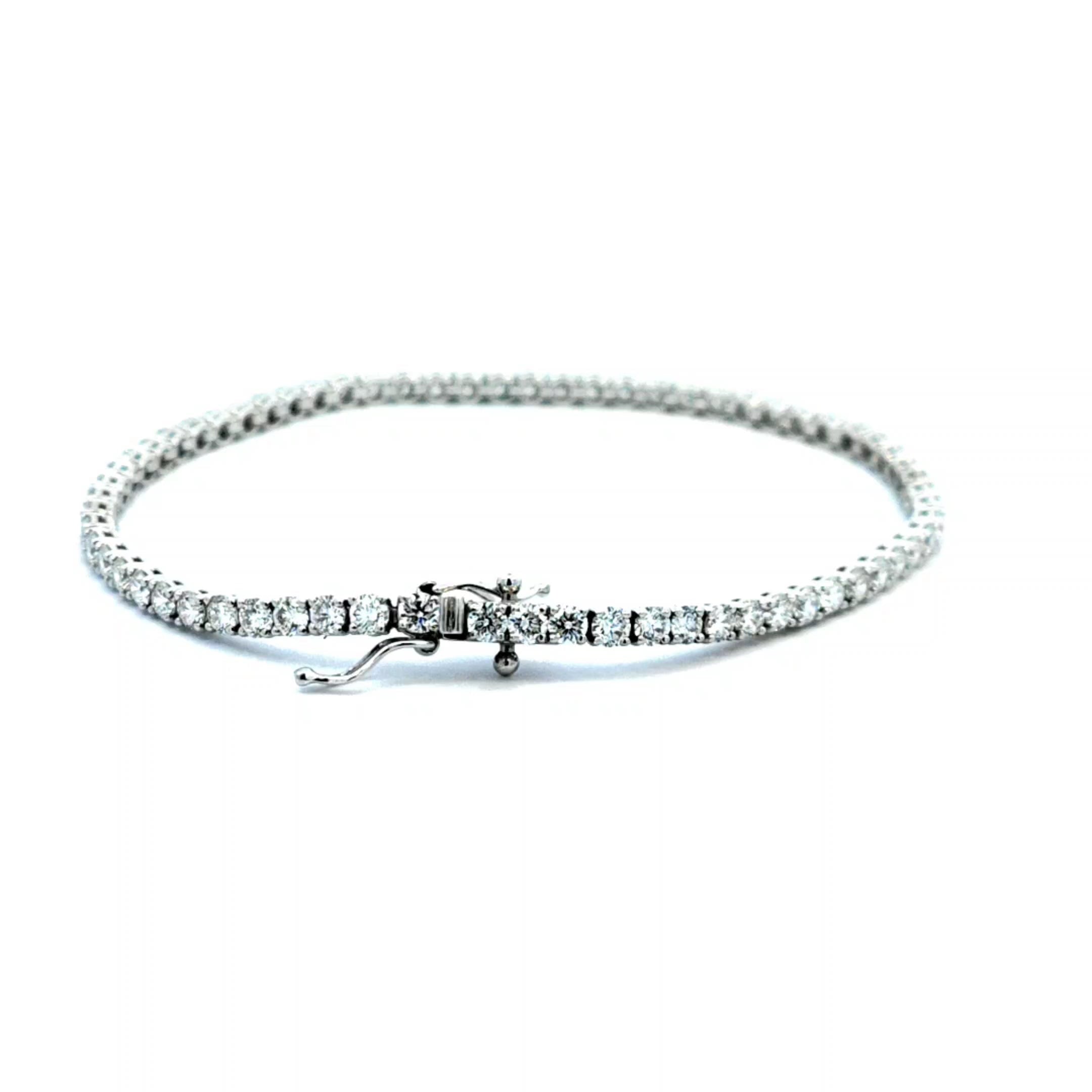 Elevate any outfit with the MJ Sherice Lab Tennis Bracelet. Crafted with 18ct white gold and adorned with lab grown diamonds, this bracelet boasts a stunning 4.49ct total weight. The dazzling D color and VS clarity of the diamonds add a touch of luxury and elegance to any look. A must-have for any jewelry collection!