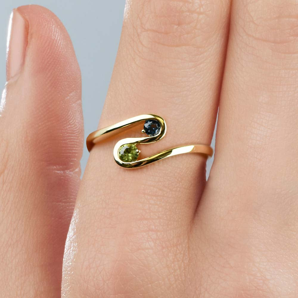 The Moora Ring is unique and stylish, featuring two round cut Australian Sapphires, in an elegant twist design. This ring is crafted in 9ct White, Rose or Yellow Gold.