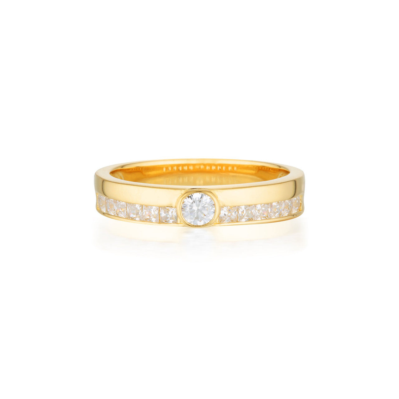The Stellar Lights Gold Orion Ring shines with celestial elegance. Its radiant design, adorned with shimmering cubic zirconia, captures the brilliance of the stars.