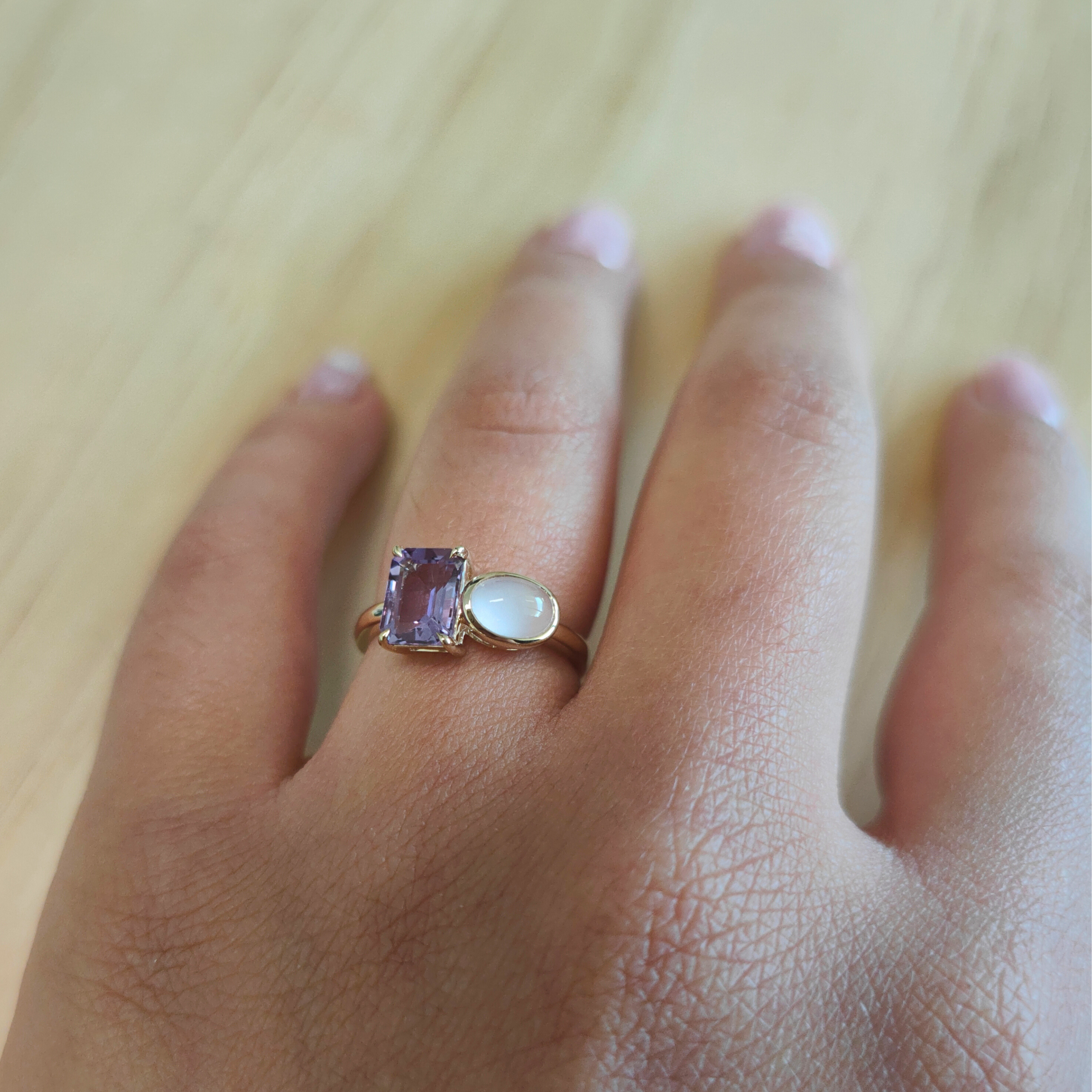9ct Yellow Gold Toi et Moi Amethyst and Rose Quartz Ring
