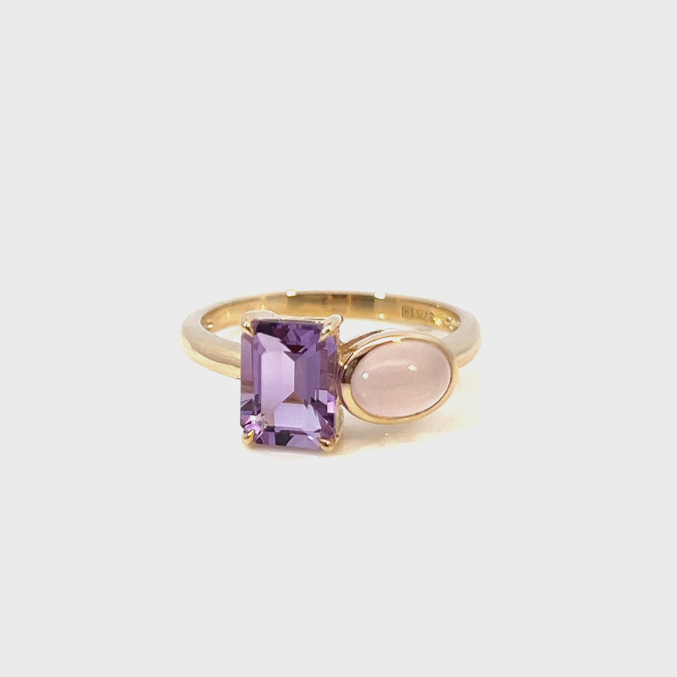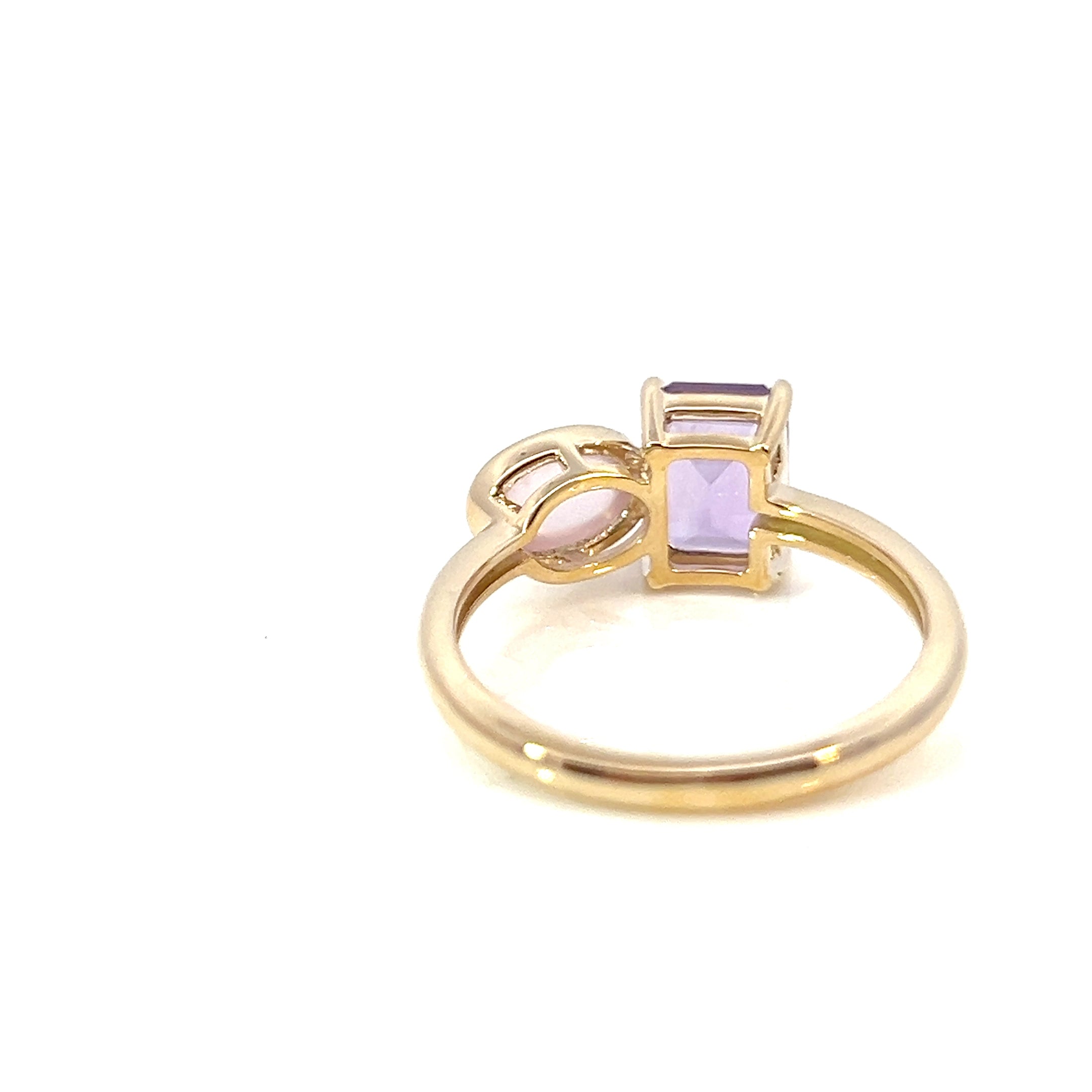 9ct Yellow Gold Toi et Moi Amethyst and Rose Quartz Ring