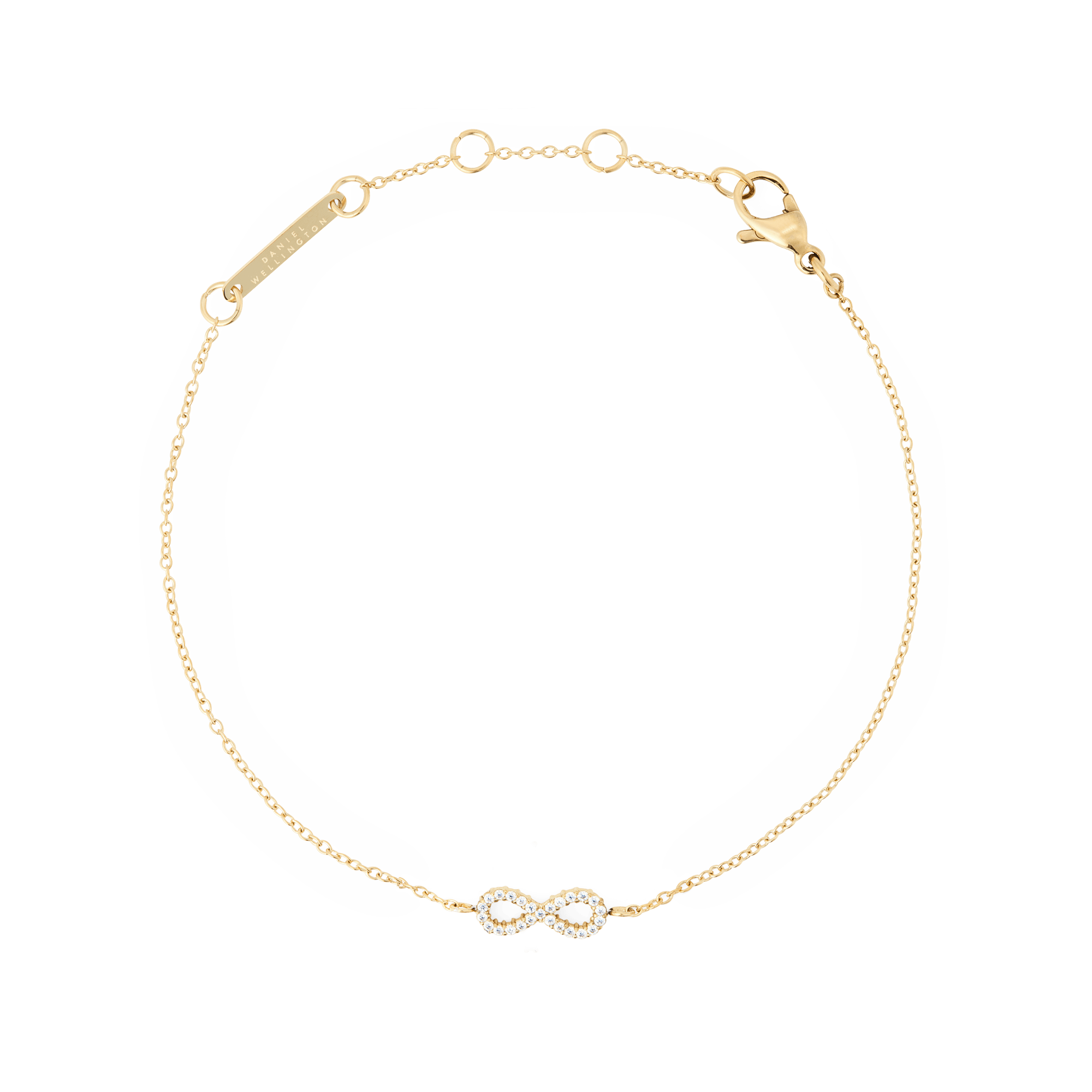 The Mirelle collection captures the elegance of minimalist design with delicate details that make a significant impact. Crafted with 0.8mm White stones and set with meticulous precision for a sparkling yet subtle effect, the infinity symbols make it easy to build your unique look. The pieces in this collection, including bracelets, necklaces, and earrings, have a refined 1.4mm thickness, offering quiet elegance perfect for everyday wear, available in Gold, Silver, and Rose Gold.