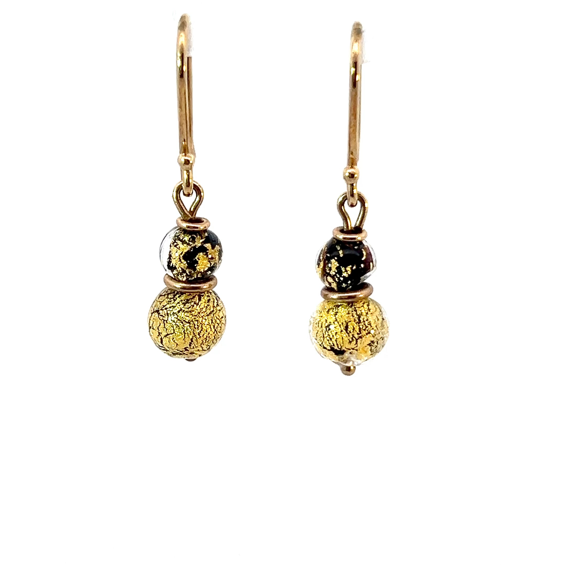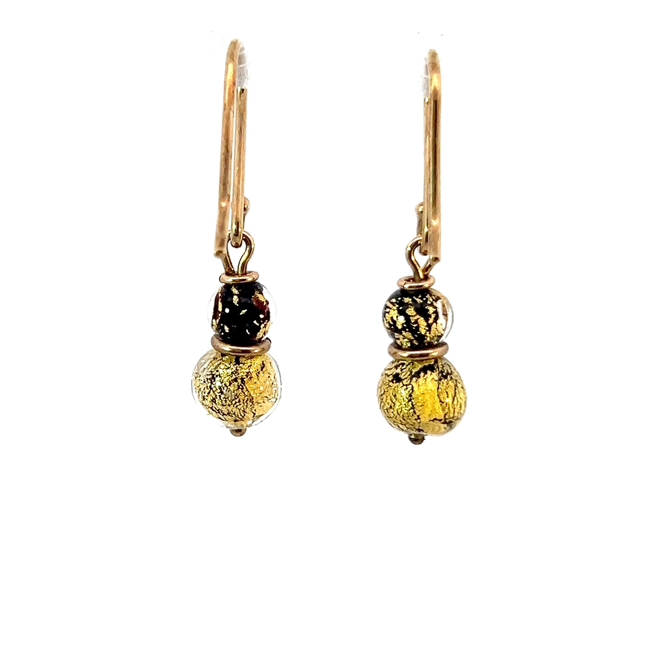 9ct Gold Murano Glass Beaded Gold Hook Earrings