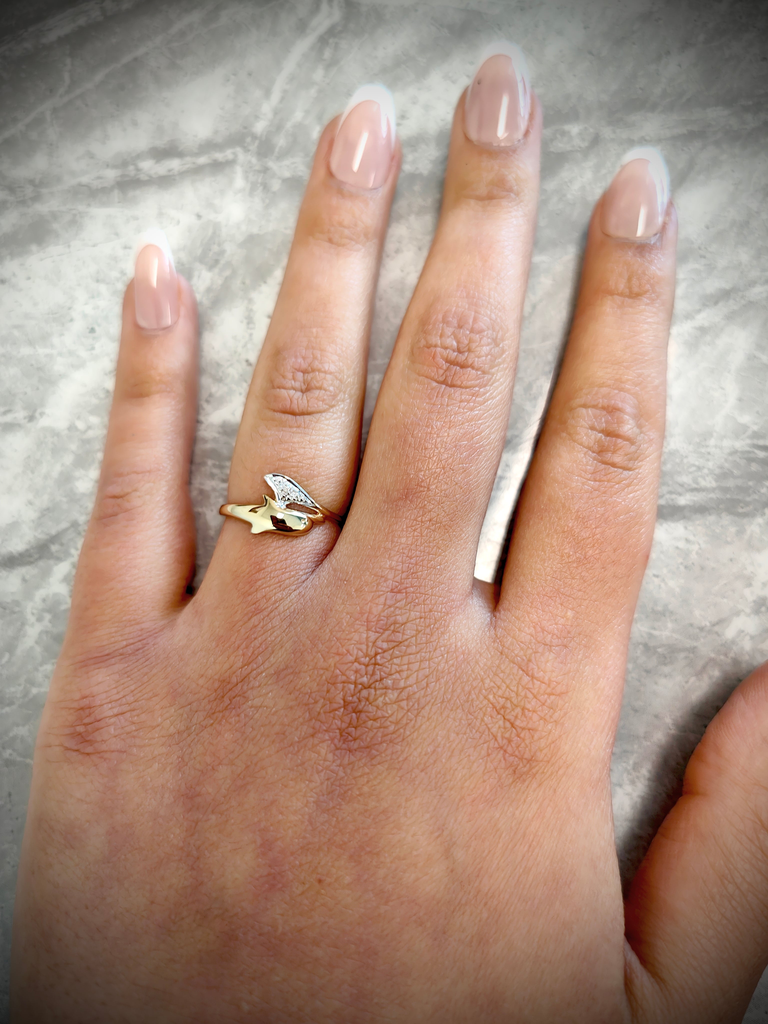 9ct Yellow Gold Dolphin Ring w/ Diamonds