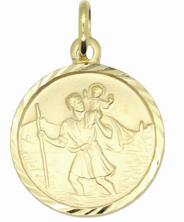 9kt Yellow Gold Round Medallion Pendant St Christopher (12mm)
