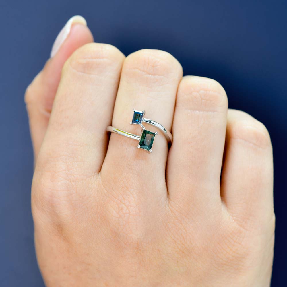 Stylish and beautiful, this piece showcases two cuts of Australian sapphires set in a wrap design. This piece is flattering and versatile and can be easily styled for daily wear.