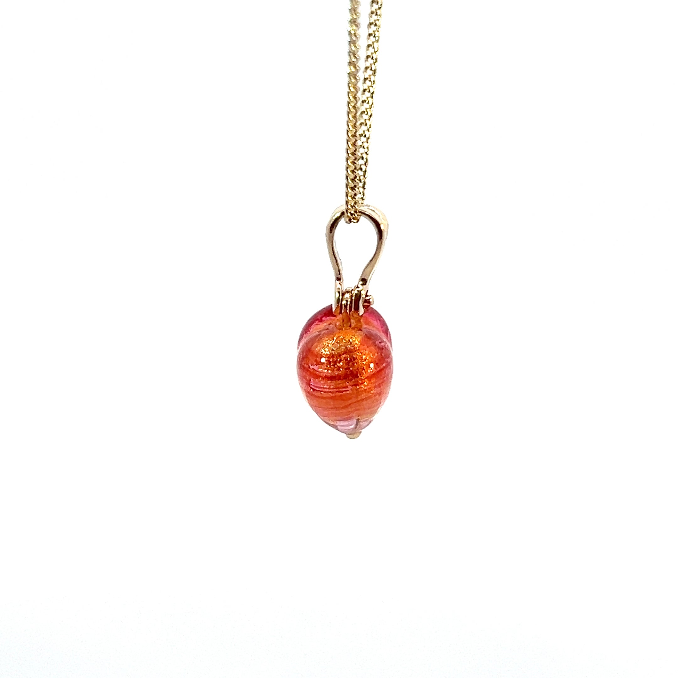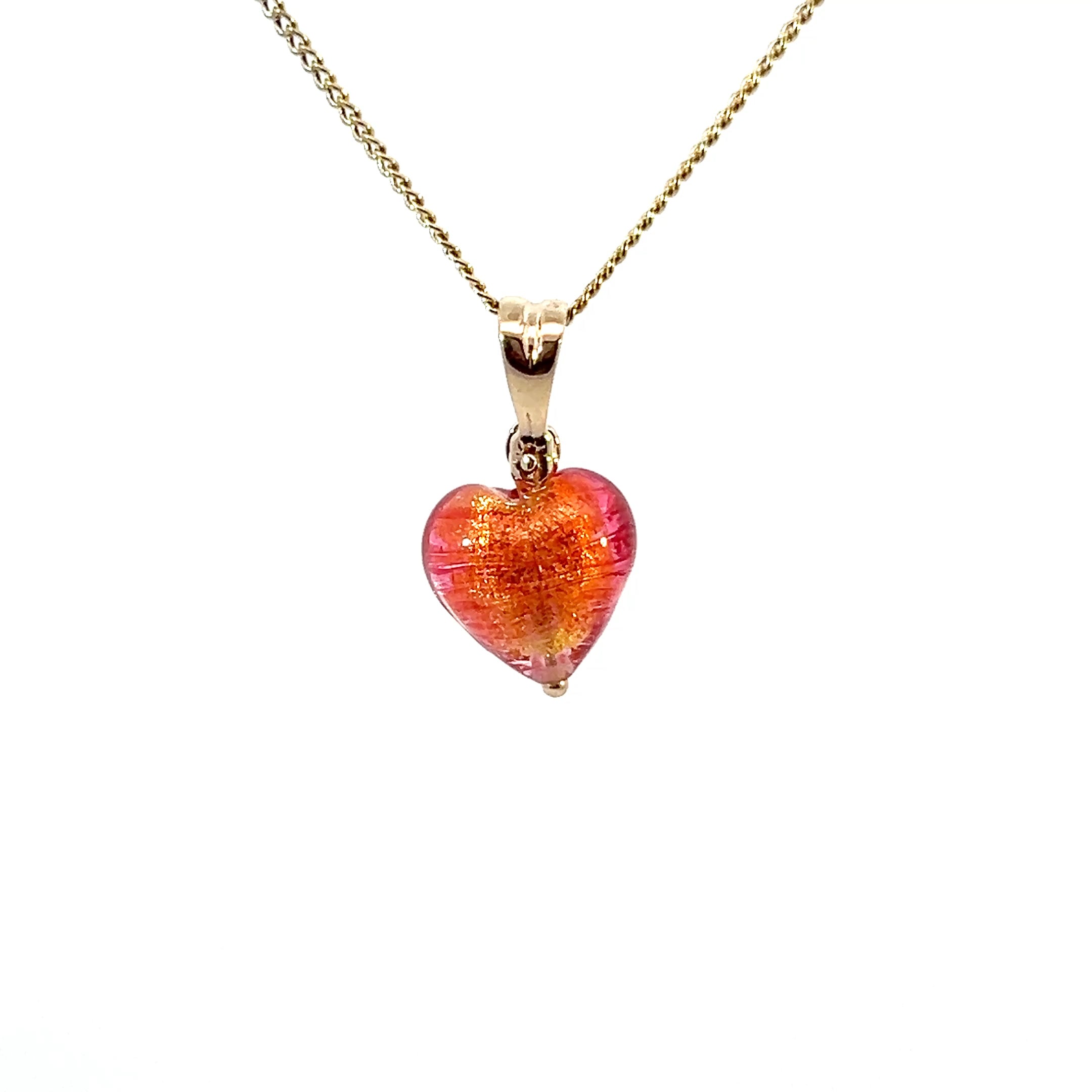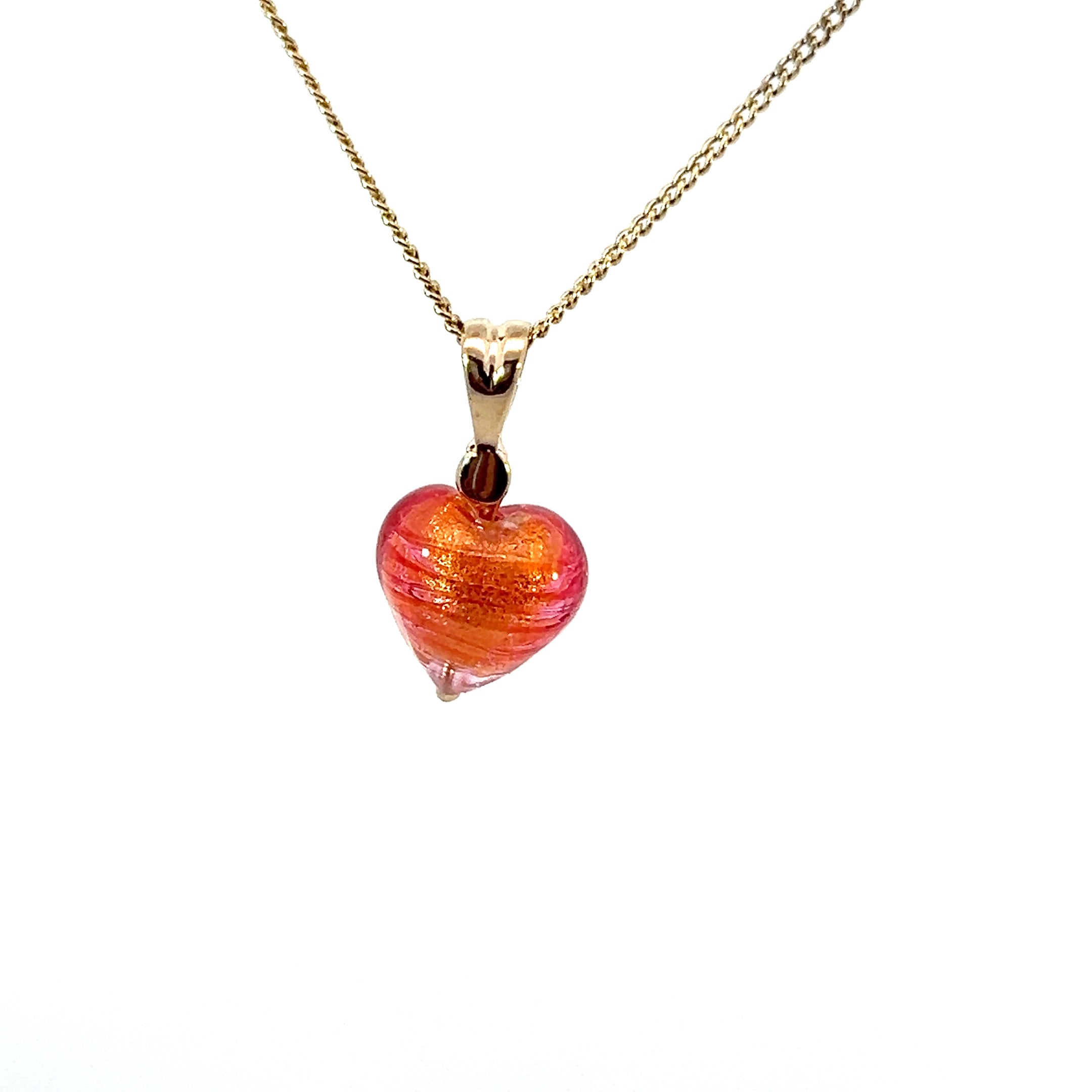 9ct Gold Coral Venetian Glass Heart Pendant