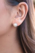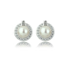The earrings are designed with an elegant and classic style, featuring a 7mm freshwater pearl as the focal point. The pearls are surrounded by a sparkling Cubic Zirconia Halo, making this earring perfect for Bridal or as a classic to your jewellery collection.