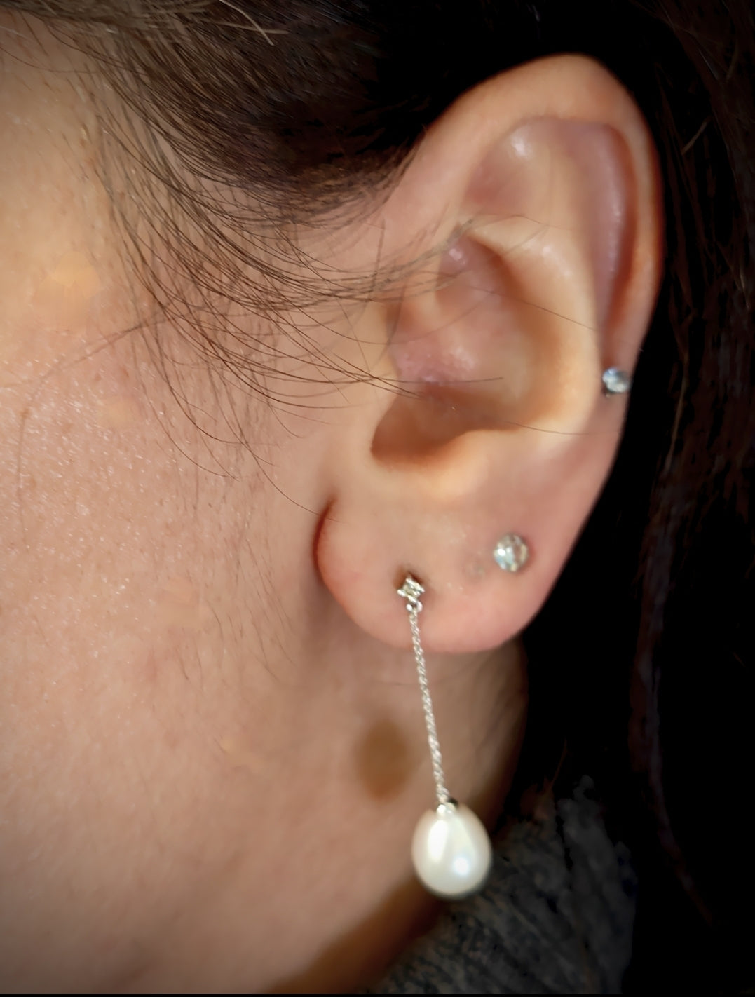 9ct White Gold Hanging Pearl Earrings