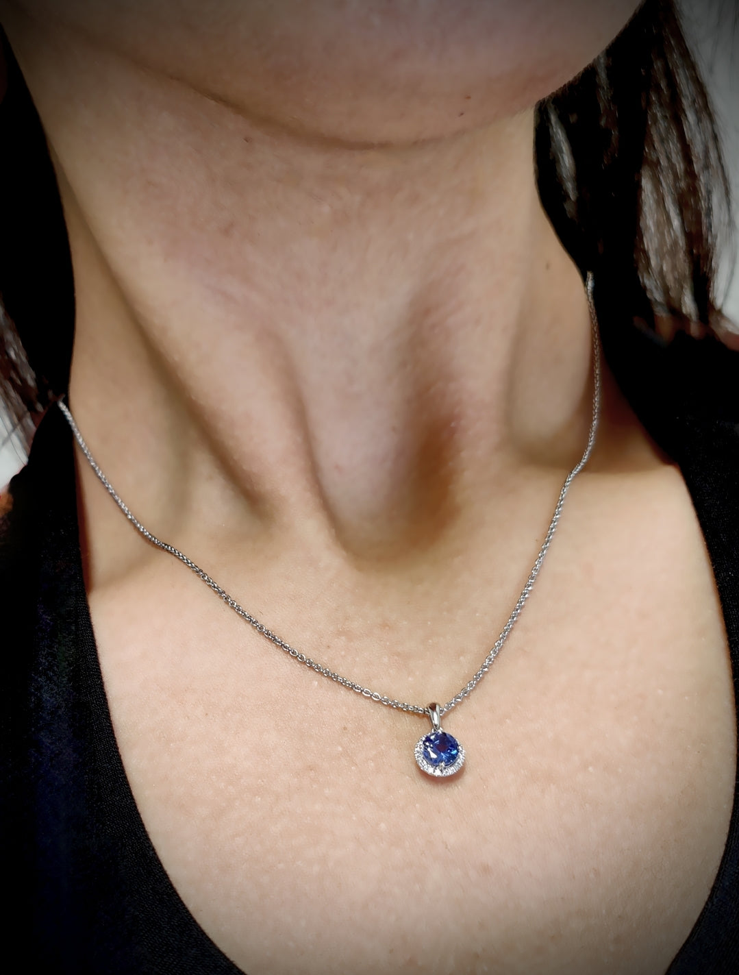 18ct White Gold Tanzanite & Diamond Pendant