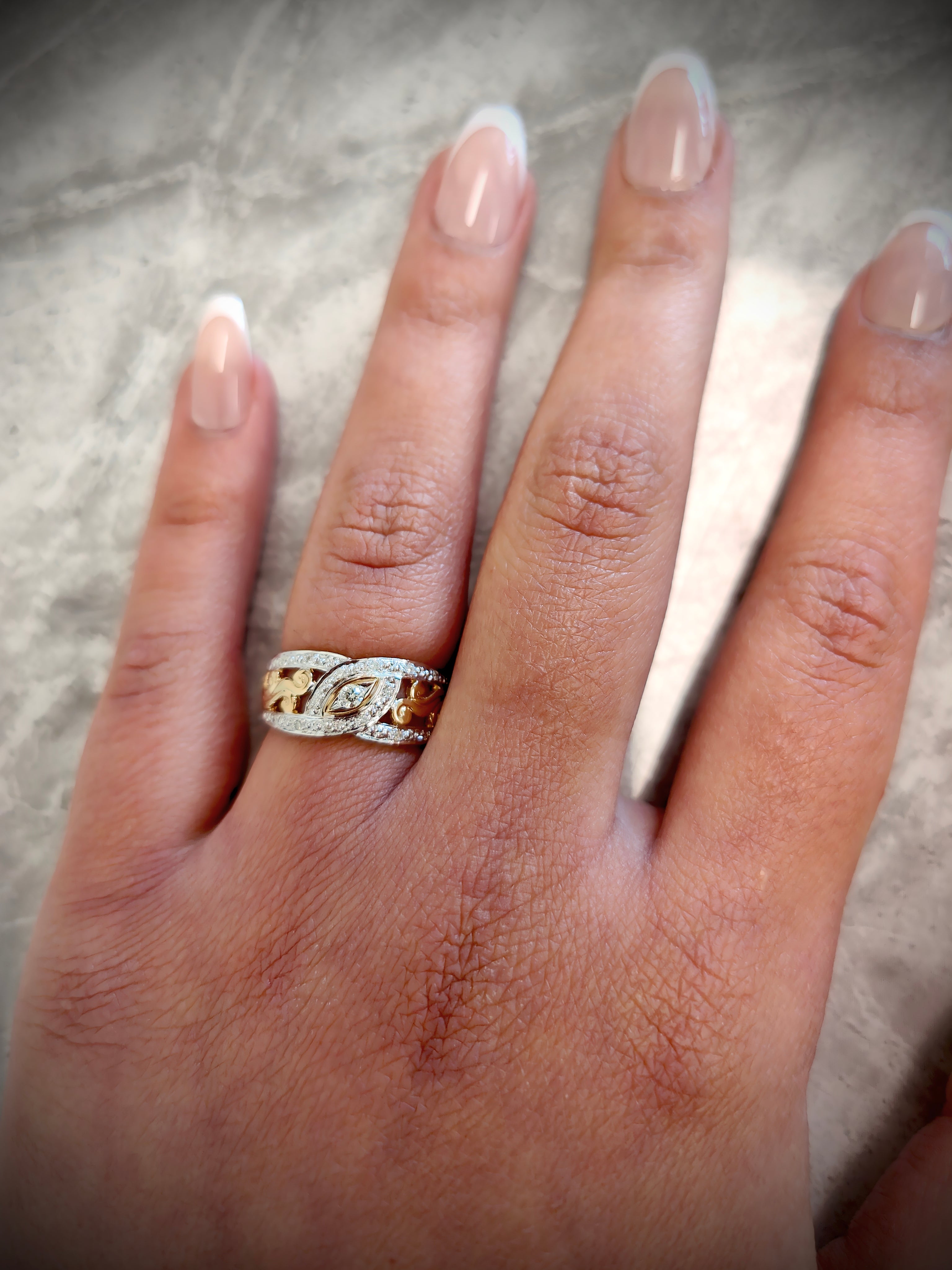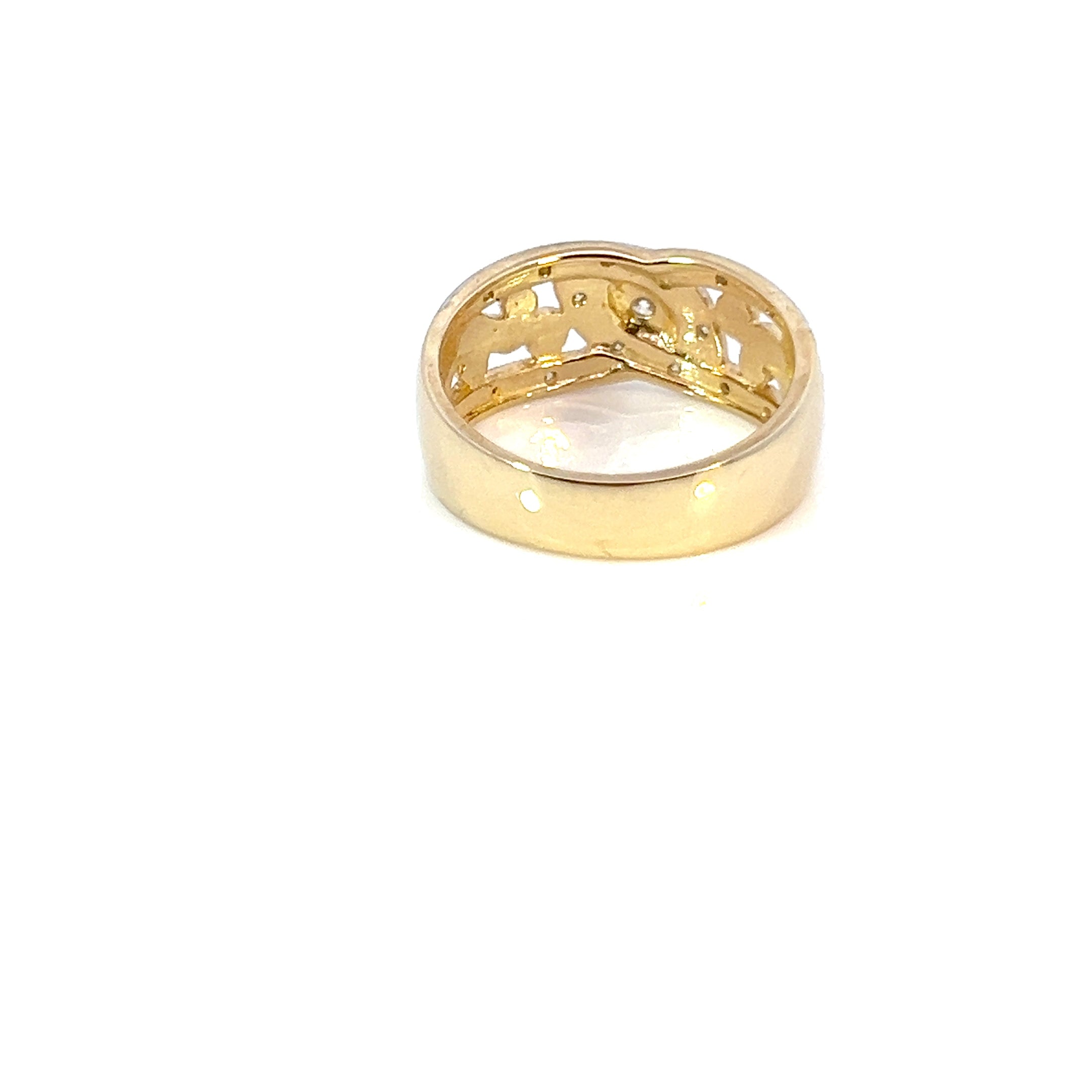 9ct Yellow Gold Large Pattern Ring with Diamond