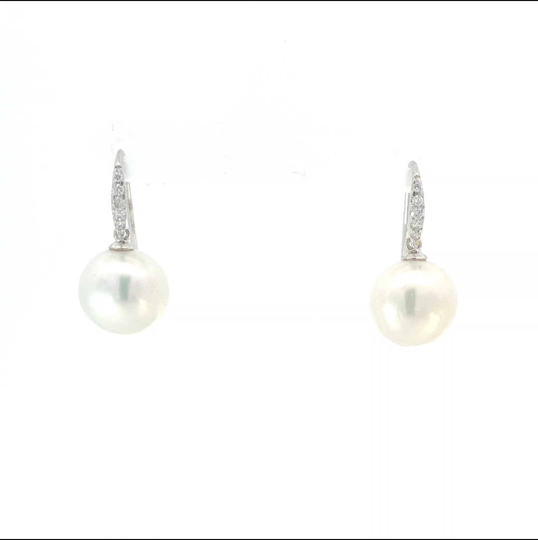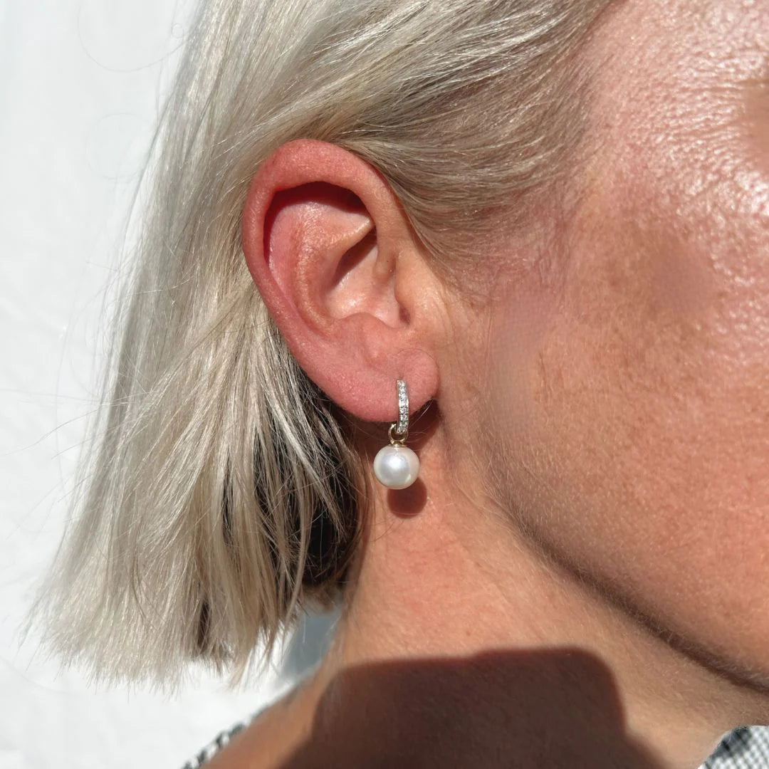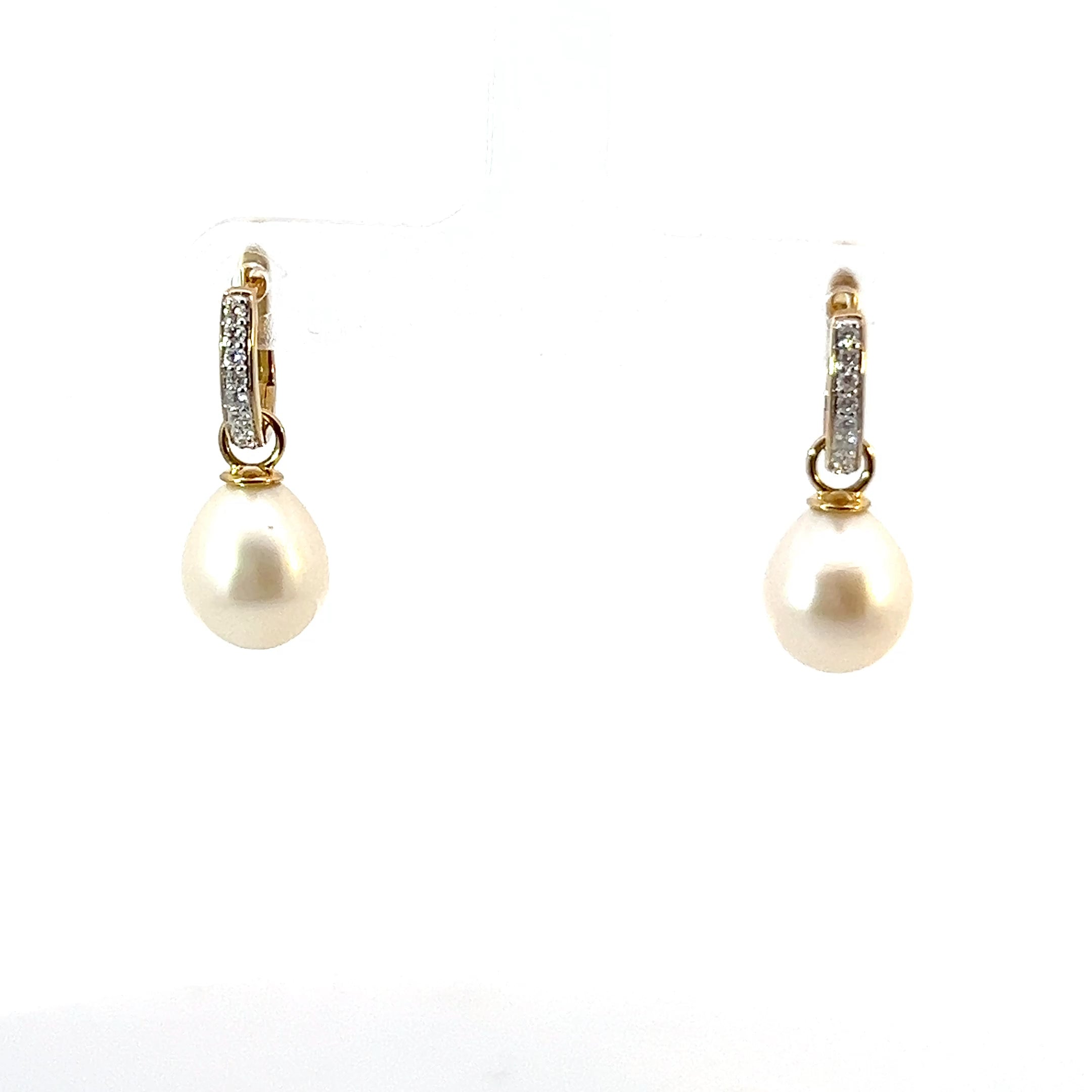9ct Yellow Gold Dangling Pearl and Diamond Hoop Earrings