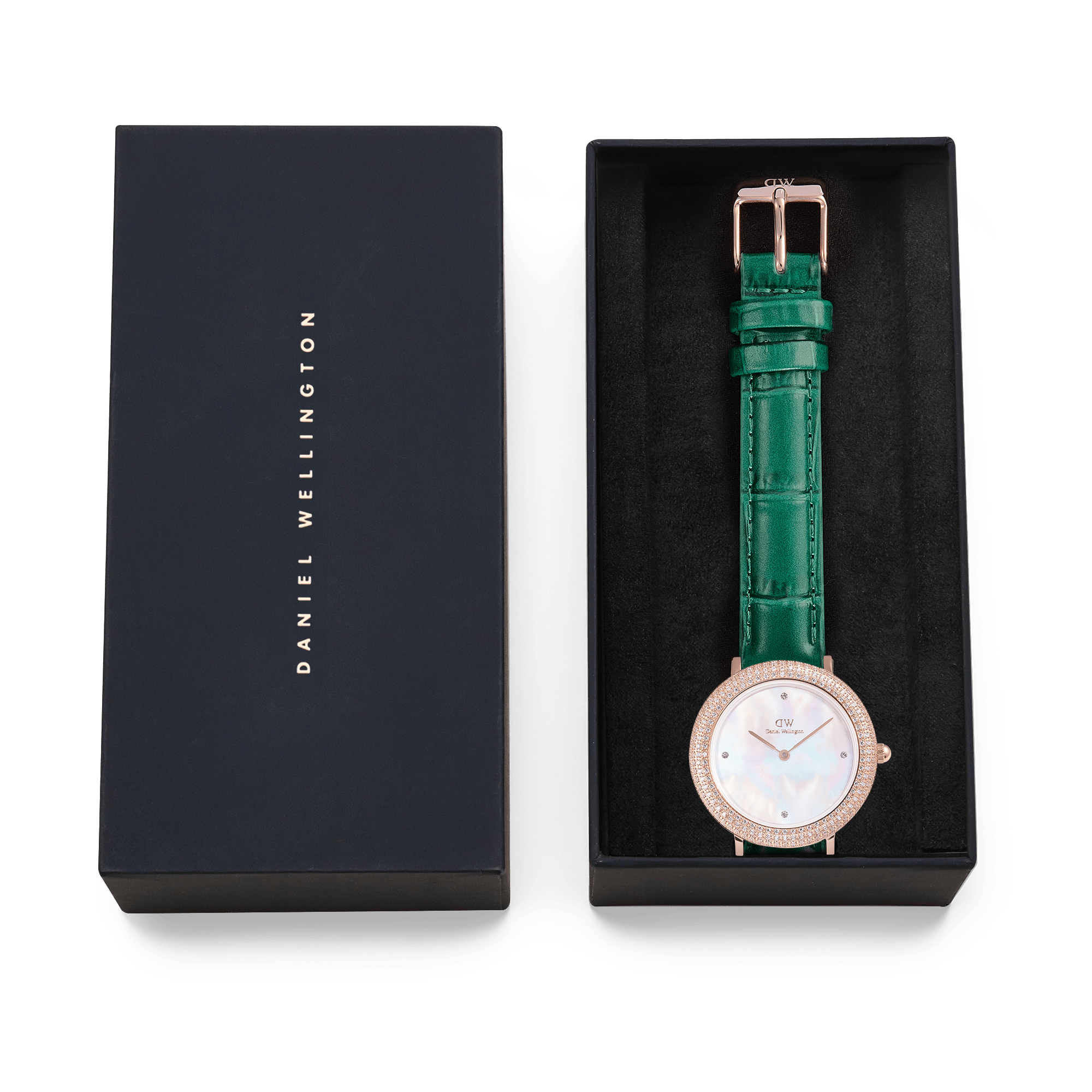 Daniel Wellington Crystalline Bezel Green Croc Rose Gold Watch