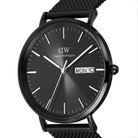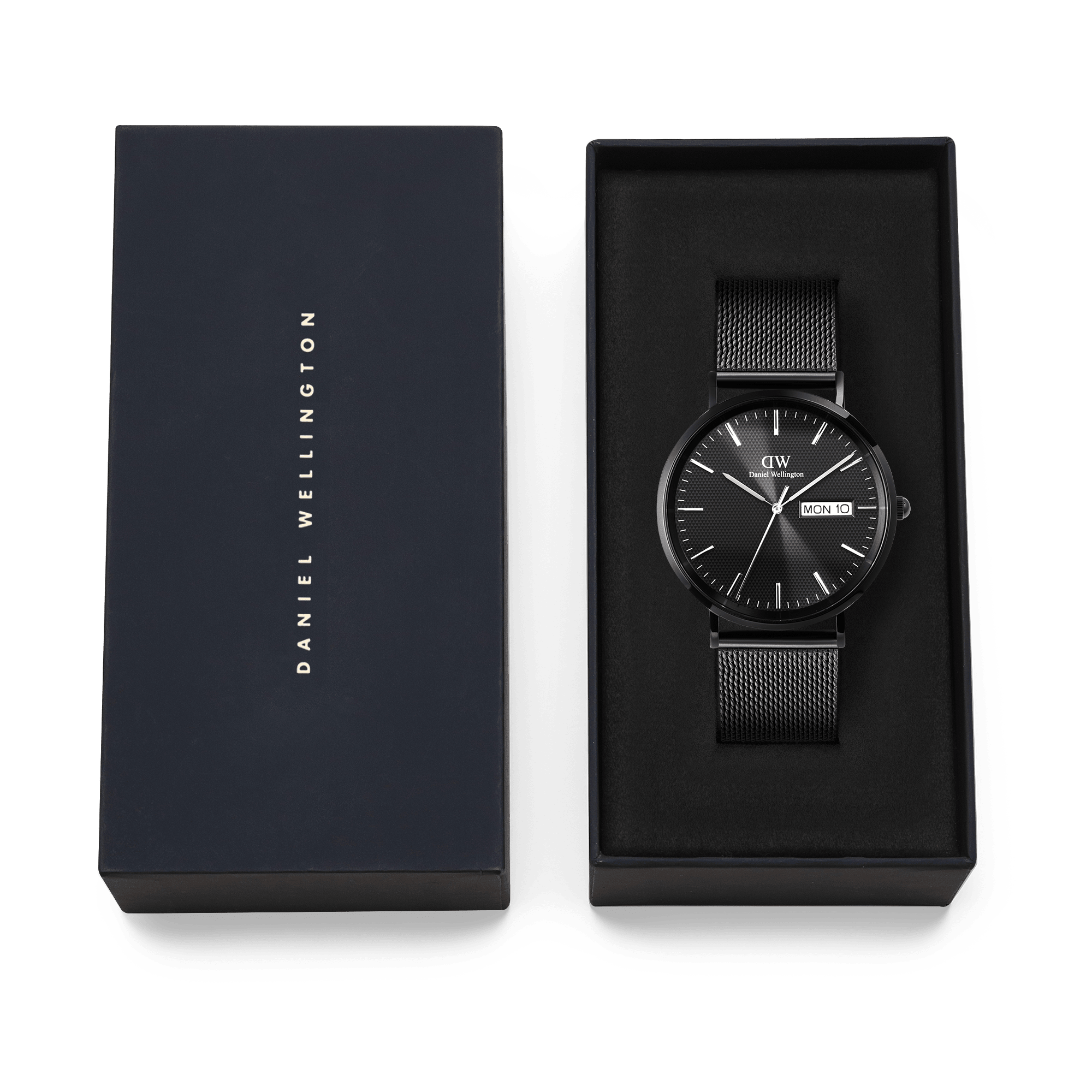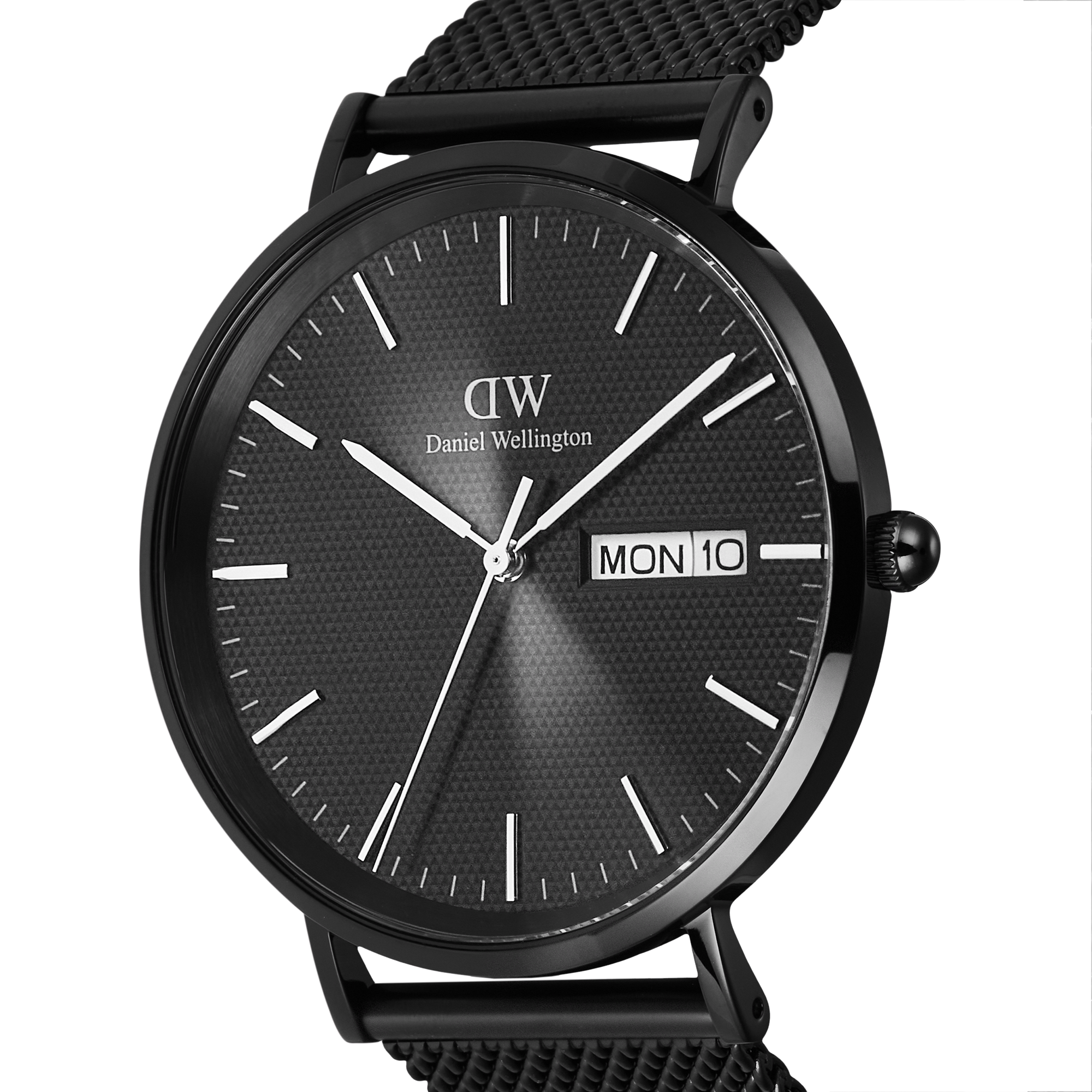 Daniel Wellington's Classic watch, known for seamlessly blending traditional craftsmanship with modern functionality, just got a well-deserved update. This design features a window that displays the date and the days of the week. The watch shares a similar case design as the previous “Multi-eye” with a circular brushed inside-chamfer between glass and dial, but the Classic Day Display boasts a pristine semi-transparent triangle pattern on the dial, creating a very subtle and elegant shimmering effect.