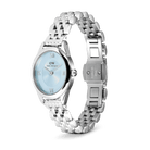 The Ophelia Mini Watch features a dial with an elegant oval shape that diverges from traditional watches. This one-of-a-kind new female watch offers a lot of newness. It comes with a newly designed beans link strap and a butterfly buckle.