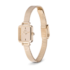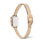 This updated Quadro Mini features a genuine mirror glass dial that perfectly complements the fully polished components of the watch. The new mesh strap, with its flattened and polished design, creates a seamless mirror effect throughout the entire piece. The result is an exclusive yet playful expression, blending sophisticated elegance with a touch of modern flair.