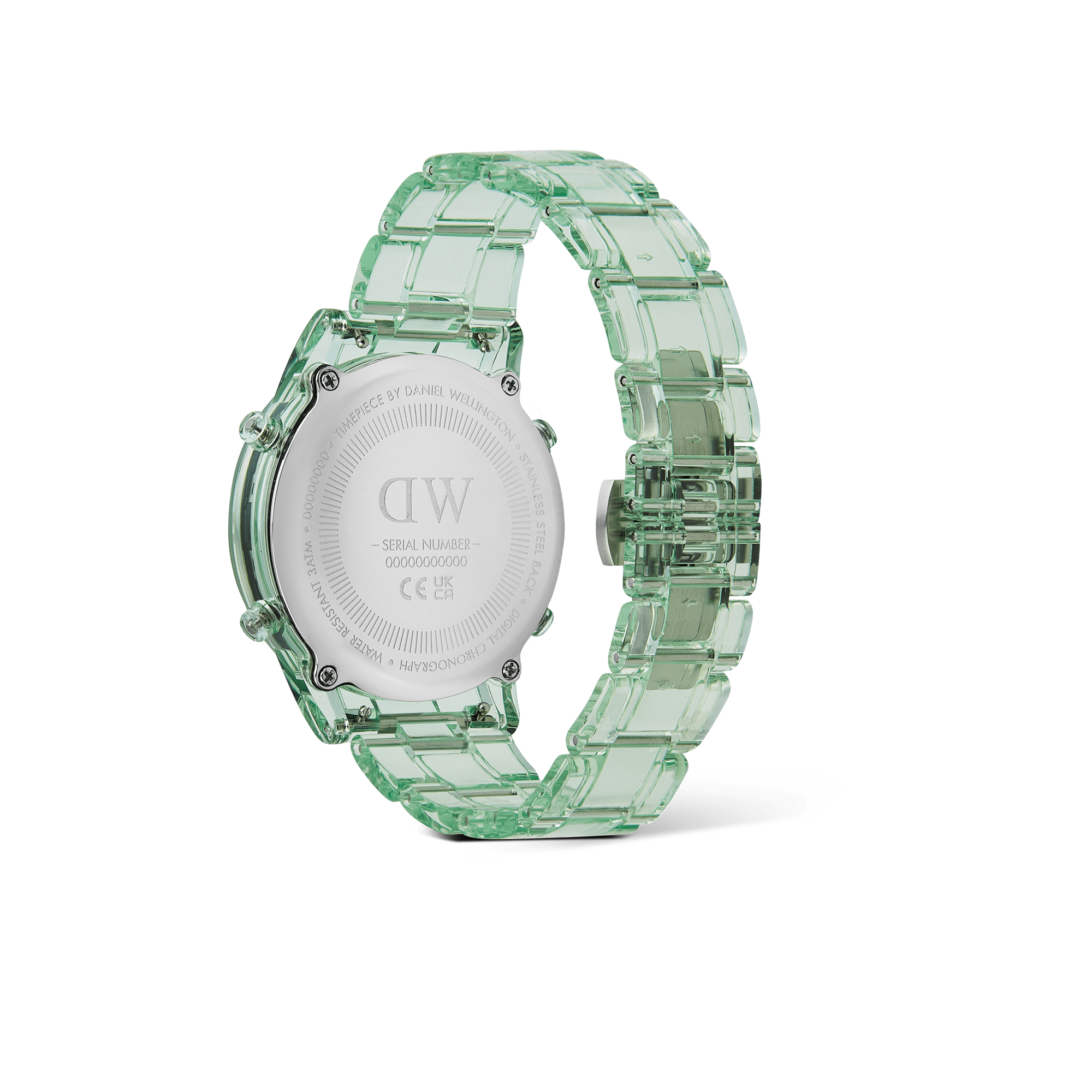 Introducing the Retro Digital Watch: a blast from the past with all the modern features you need. Crafted from transparent bio-based plastic in a cool tone colour palette, this timepiece effortlessly blends throwback charm with contemporary materials for a truly distinct aesthetic. And while its silhouette takes inspiration from our renowned Iconic Link design, we’ve gone truly digital with 10-digit dual time display, auto calendar with a daily alarm and hourly chime, and chronograph function. This light green version is available in two sizes.