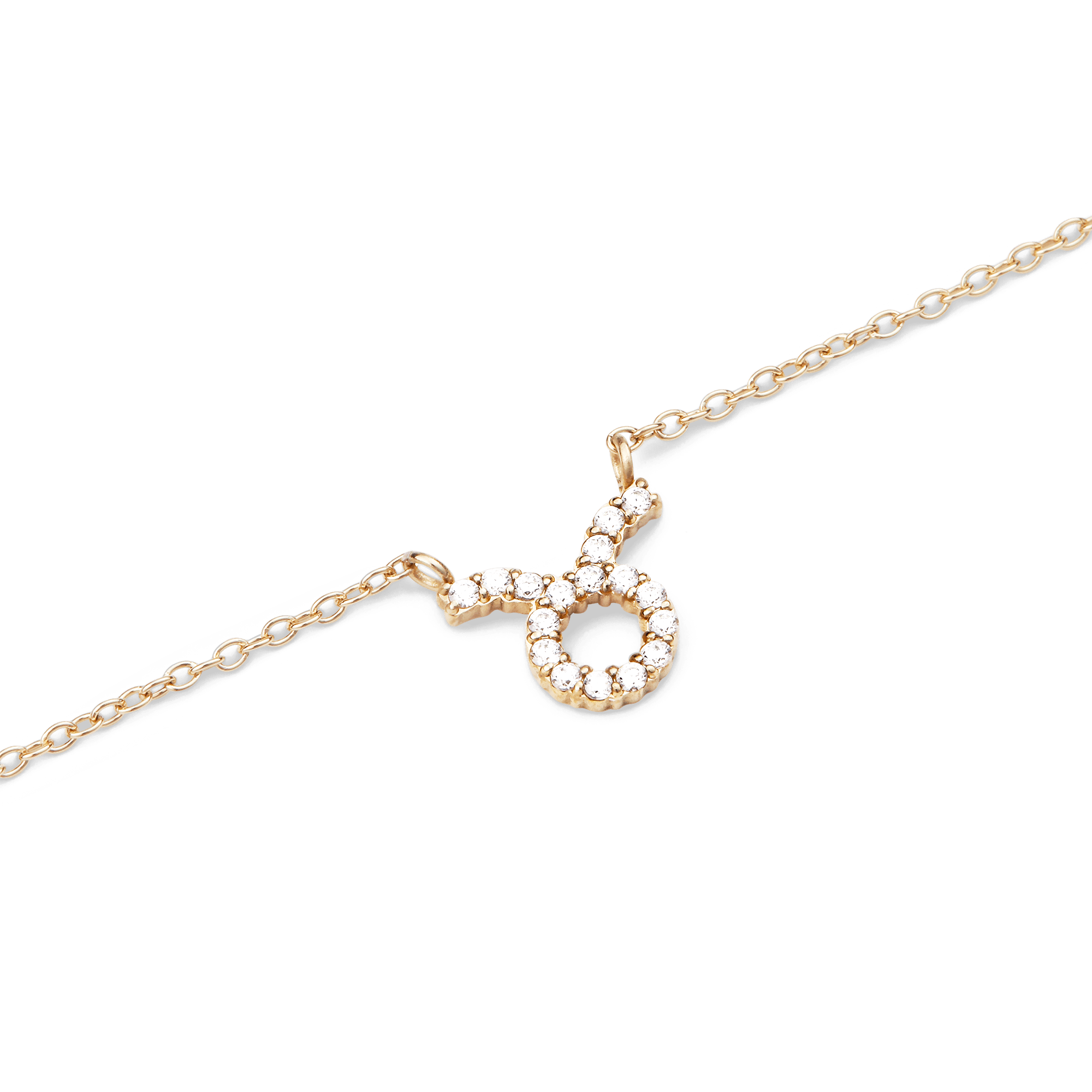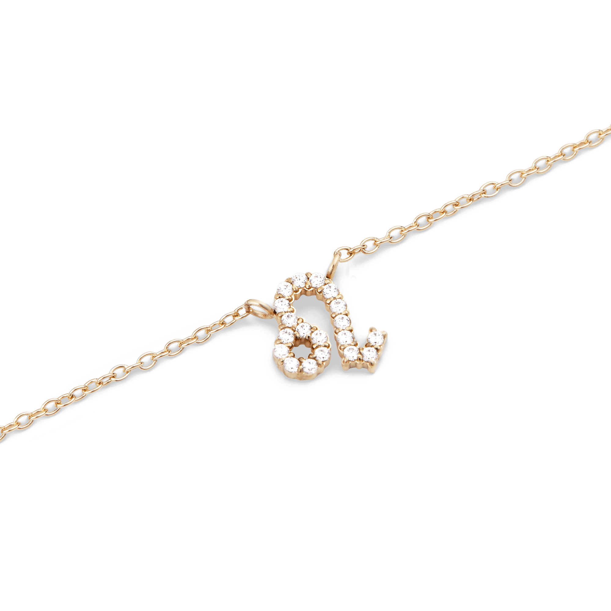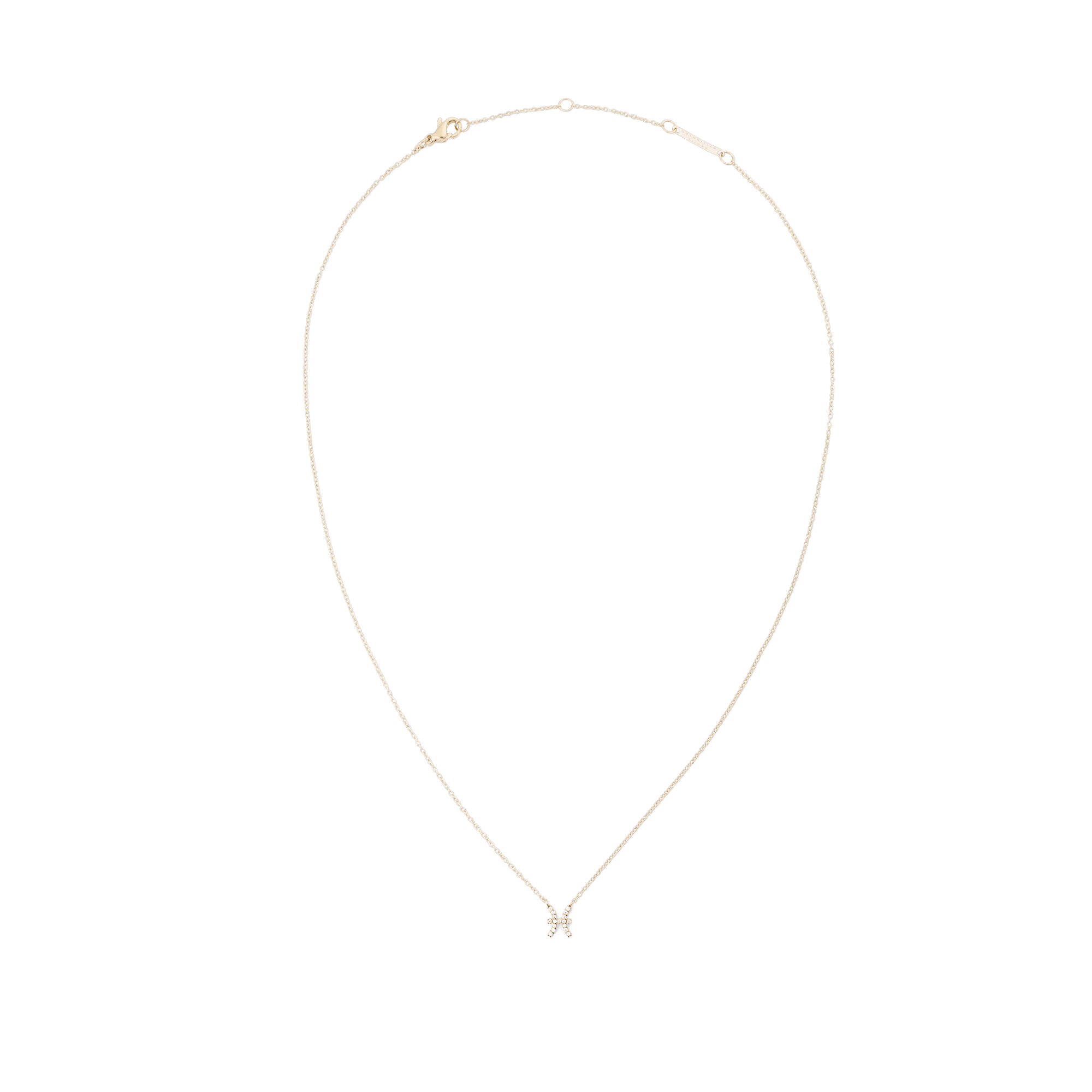 Take this as a sign from the stars: it’s time to add some celestial energy to your look. This gold necklace features a thin, elegant chain with a fixed crystal zodiac pendant. Every crystal on the pendant is hand-set using a claw setting technique, and the chain comes equipped with sizing rings for an adjustable length.