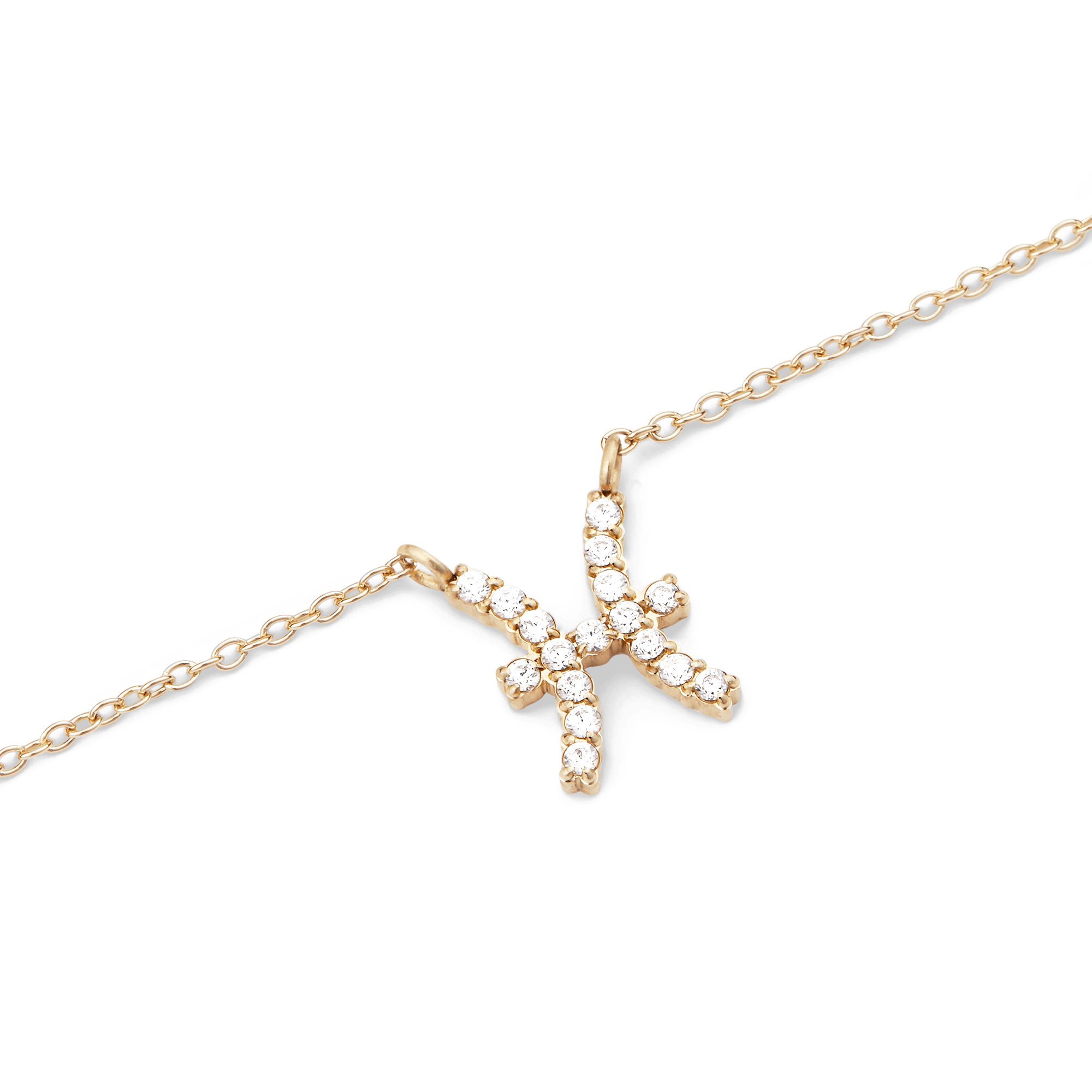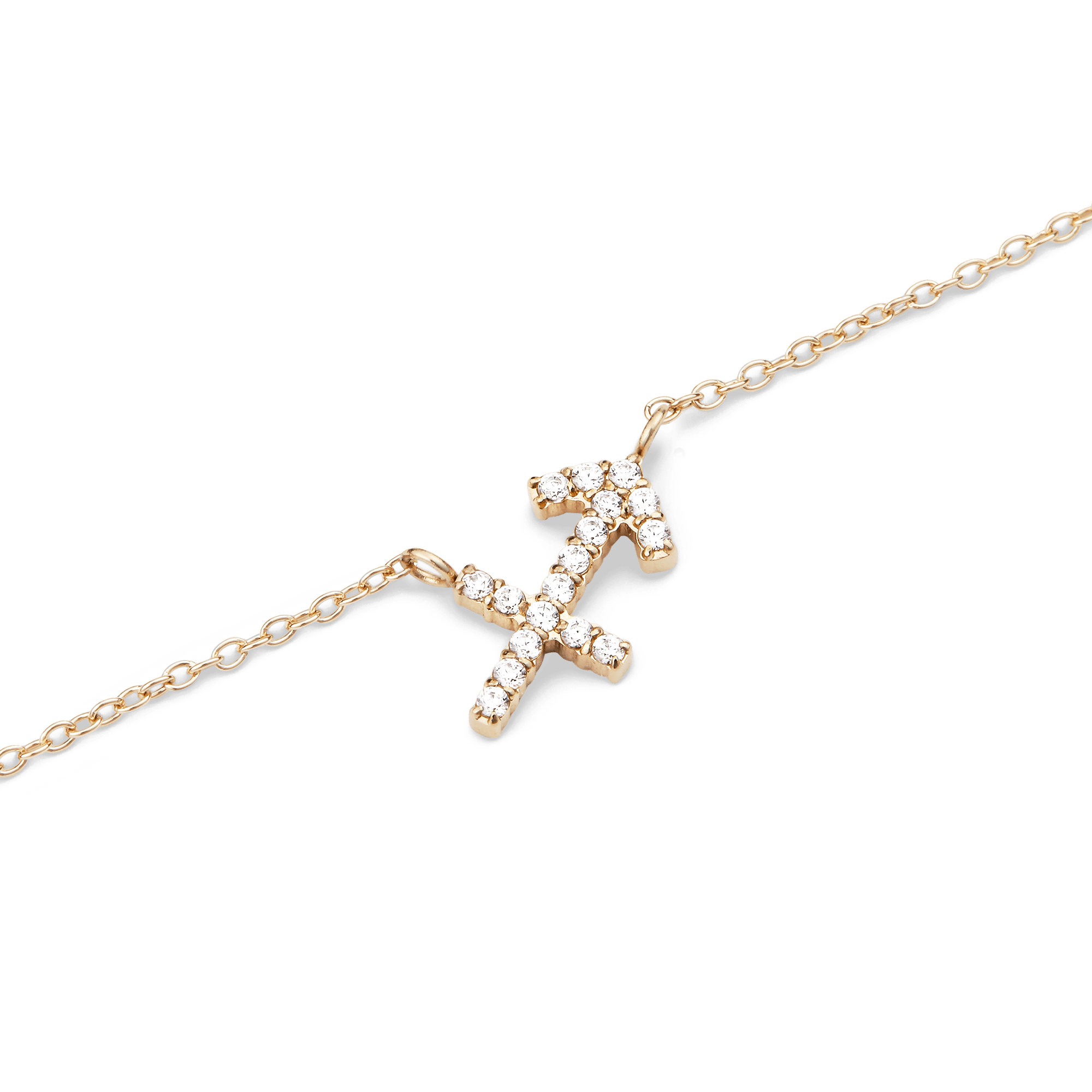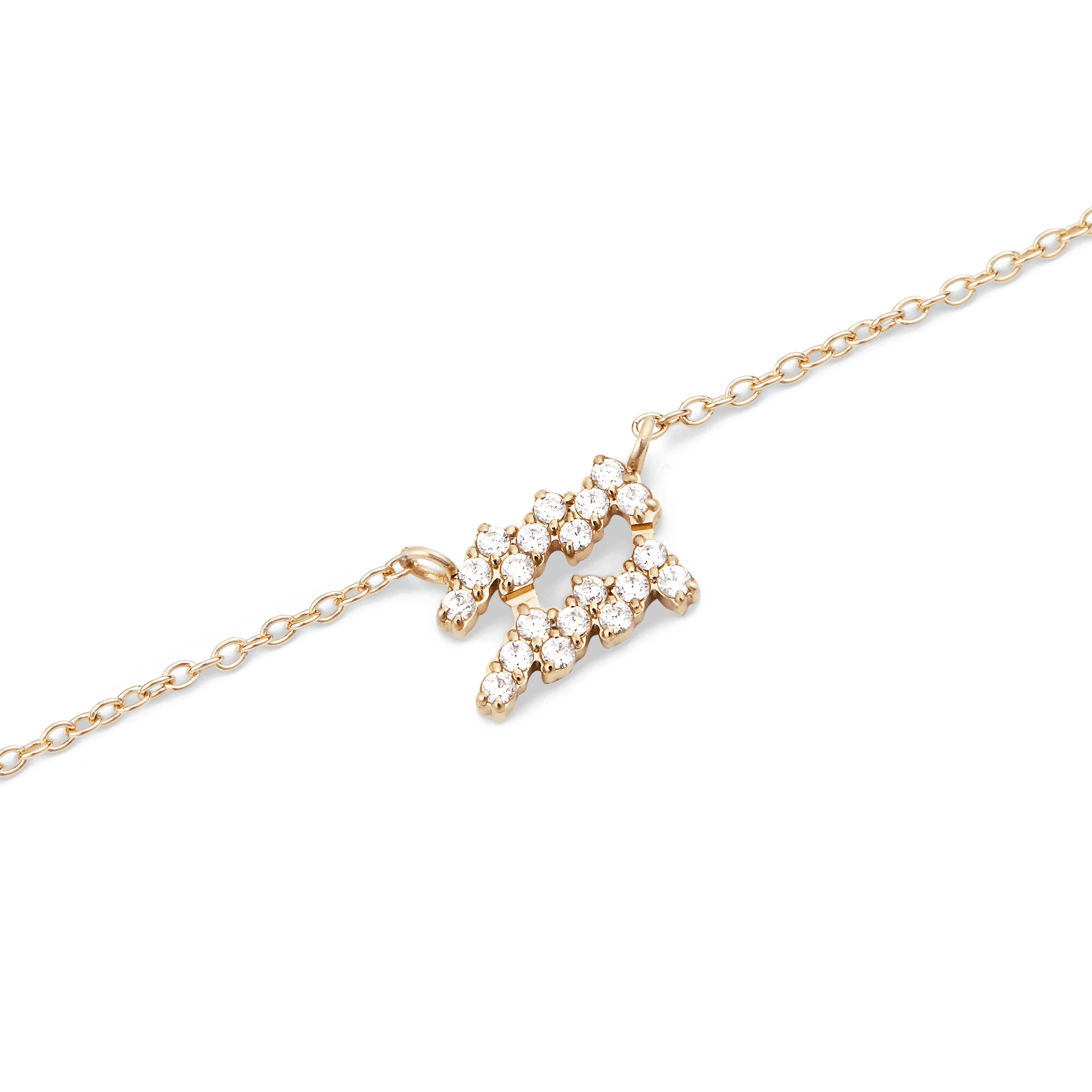 Take this as a sign from the stars: it’s time to add some celestial energy to your look. This gold necklace features a thin, elegant chain with a fixed crystal zodiac pendant. Every crystal on the pendant is hand-set using a claw setting technique, and the chain comes equipped with sizing rings for an adjustable length.