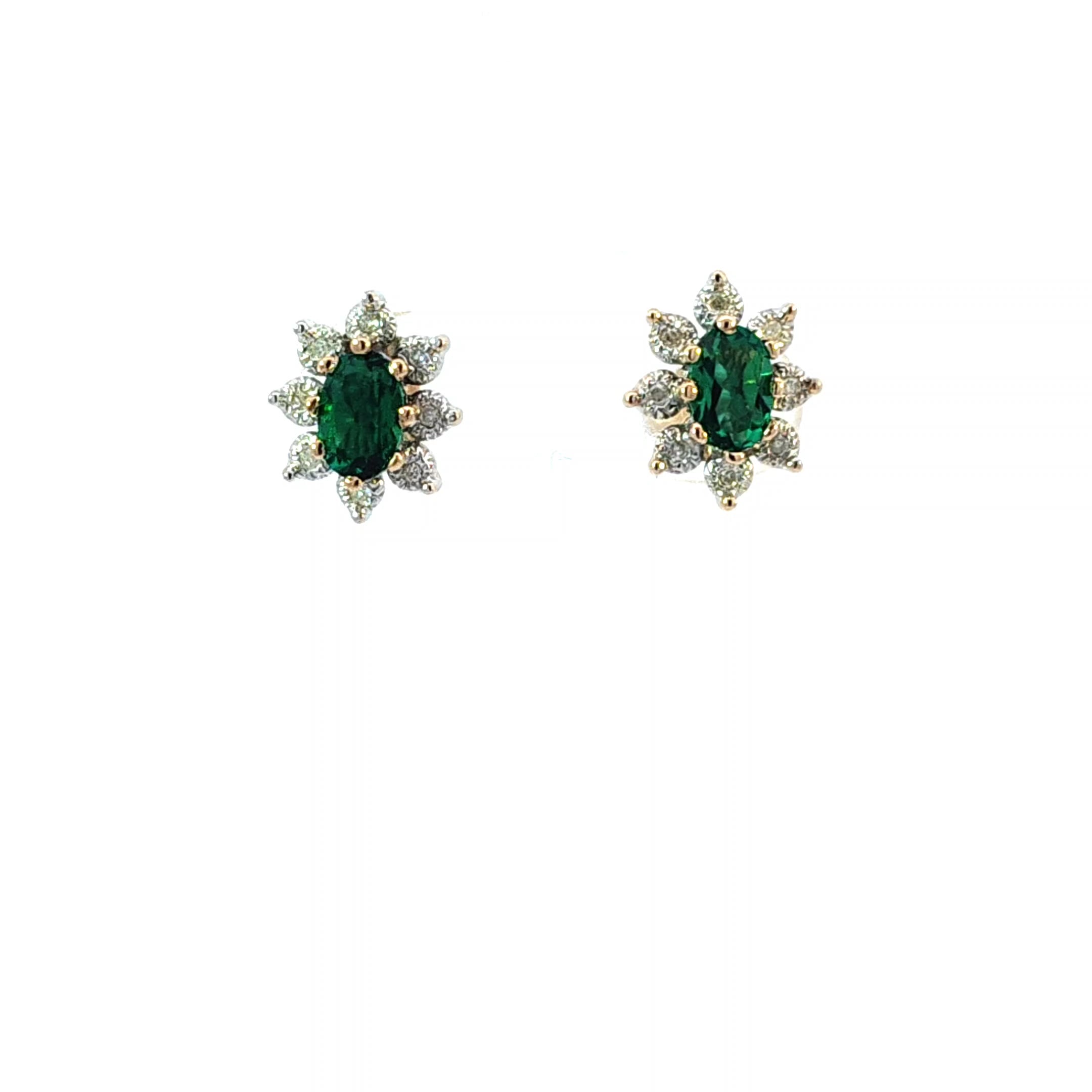 Elevate your elegance with the MJ 9K CR Flower Emerald & Diamond Studs, crafted in 9-carat yellow and white gold for a timeless look. These delicate flower-shaped earrings feature vibrant created emeralds at their hearts, surrounded by brilliant diamond borders that catch the light beautifully. Perfect for adding a touch of refined sophistication to any outfit, these studs combine classic design with lasting quality, making them an exceptional choice for daily wear or special occasions. Showcase your unique style with this stunning blend of precious stones and expert craftsmanship.