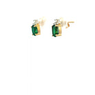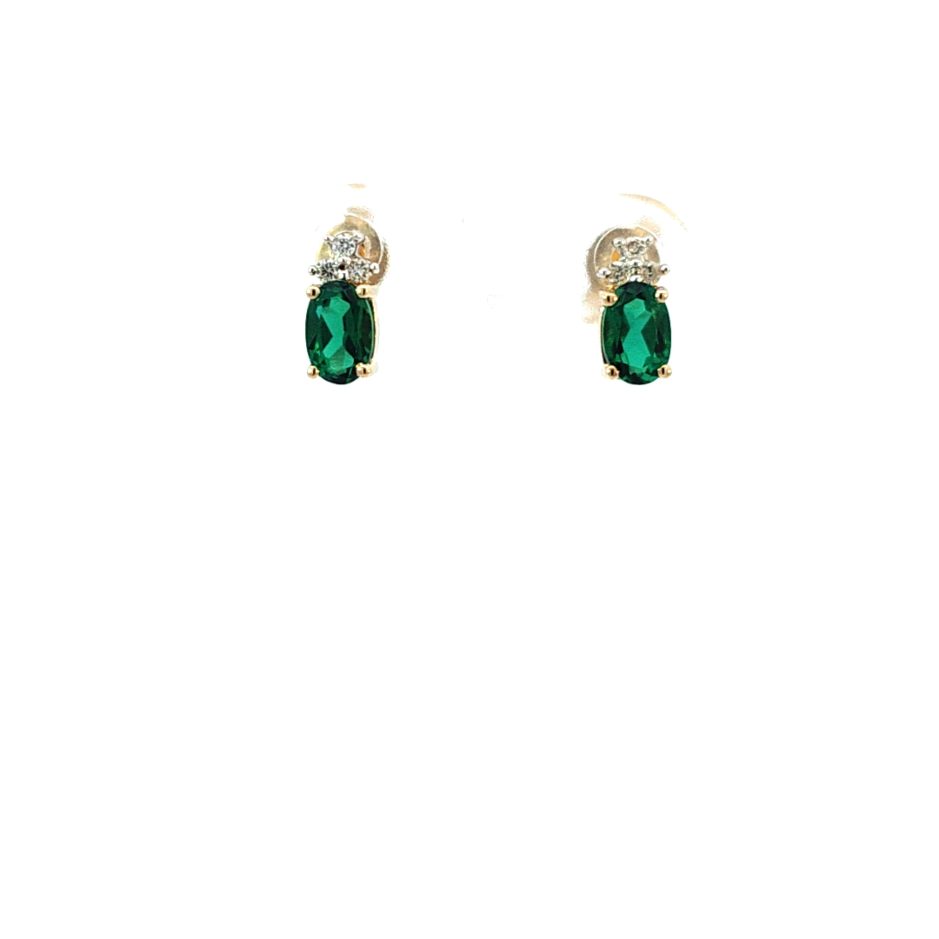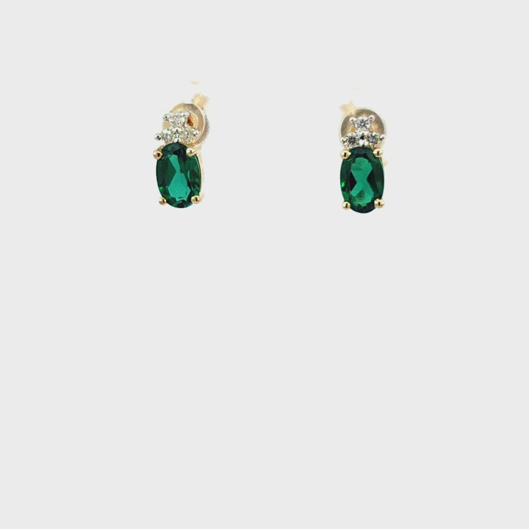 Elevate your elegance with the MJ 9KY Oval Emerald & Diamond Studs, crafted in lustrous 9-carat yellow gold. Each stud features a captivating created emerald that sparkles with rich green hues, complemented by brilliant diamonds for added brilliance. These earrings offer a timeless design that enhances both everyday looks and special occasions. Durable and refined, they serve as a perfect gift or a statement piece that effortlessly blends classic beauty with contemporary style. Experience the allure of precious gemstones in a refined and versatile accessory.