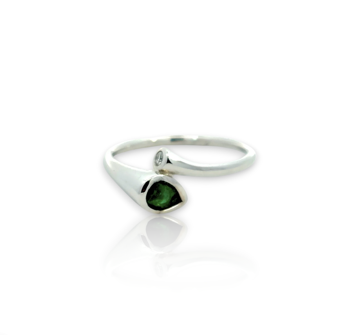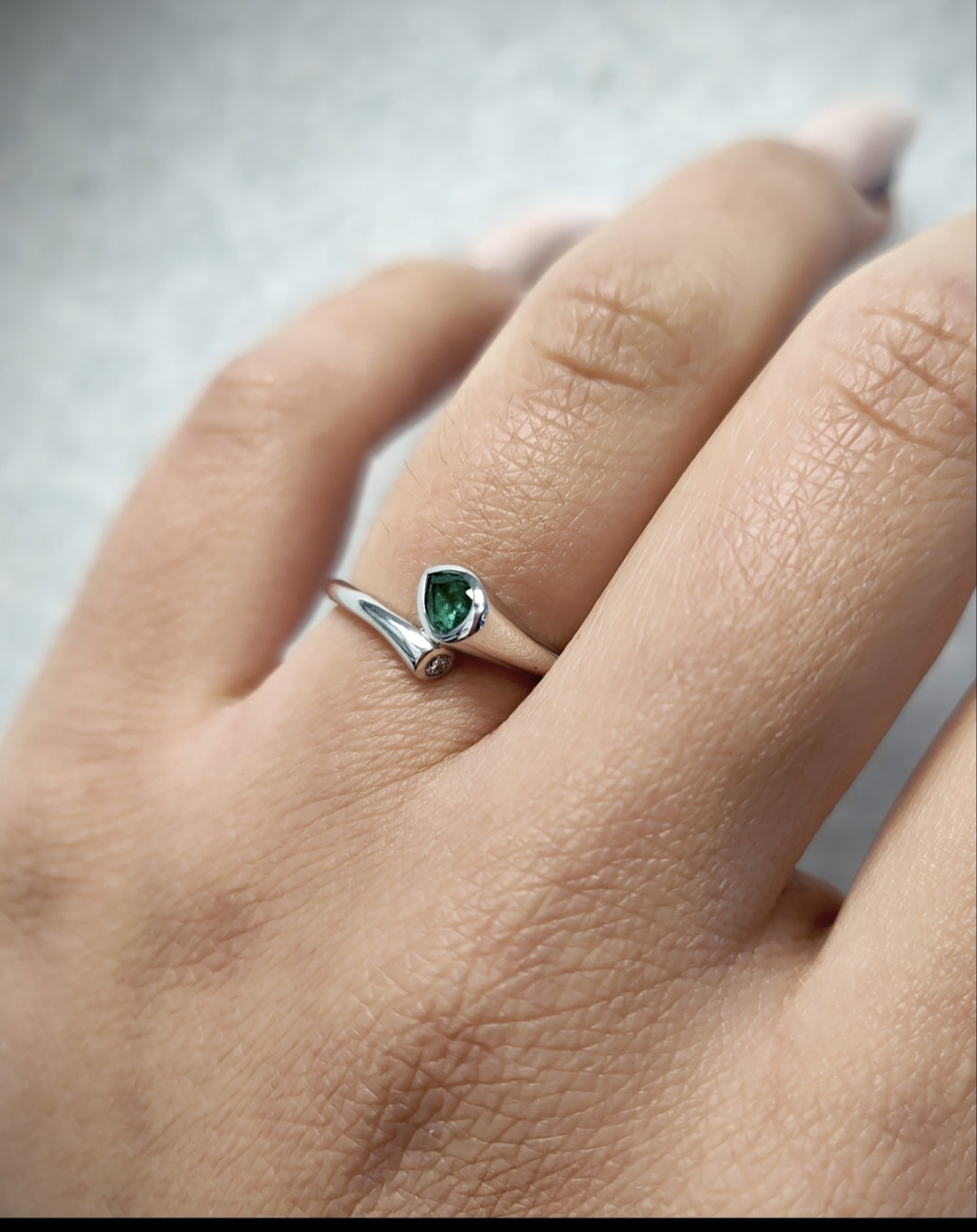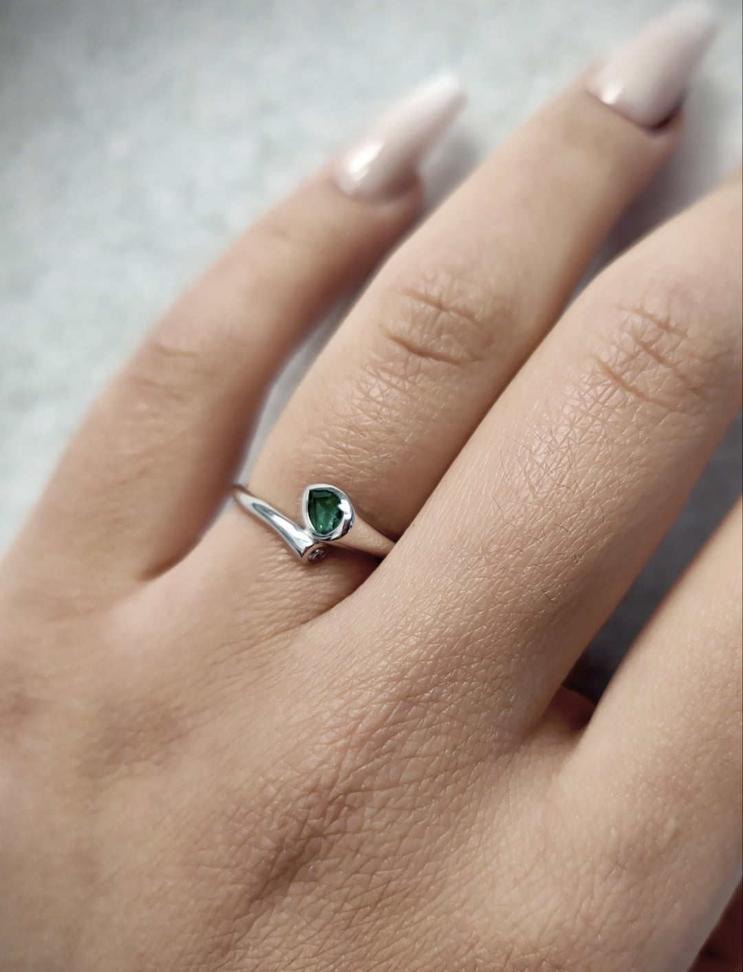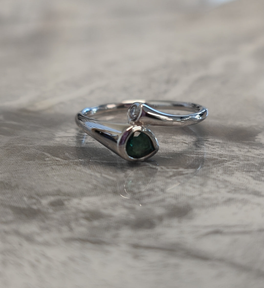 Captivating 9ct white gold ring featuring natural emeralds and diamonds in an elegant twist design. Emeralds symbolize passionate love, personal growth, and profound wisdom—making this piece more than just jewelry. The perfect statement to showcase your deep emotional connections and unwavering loyalty in relationships.