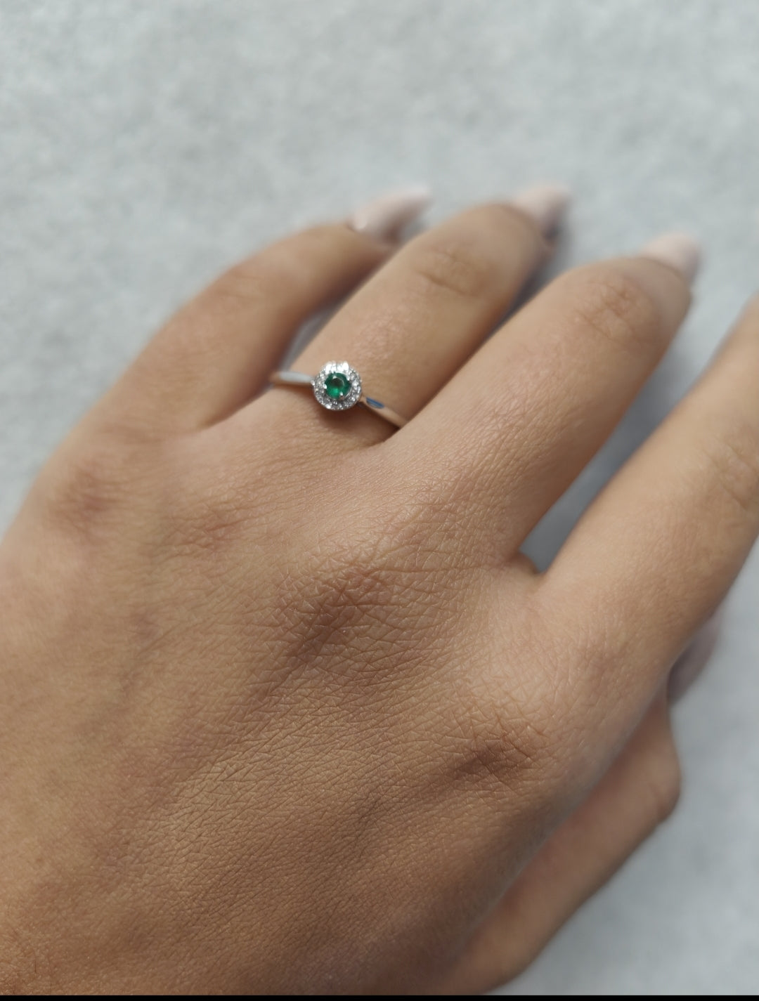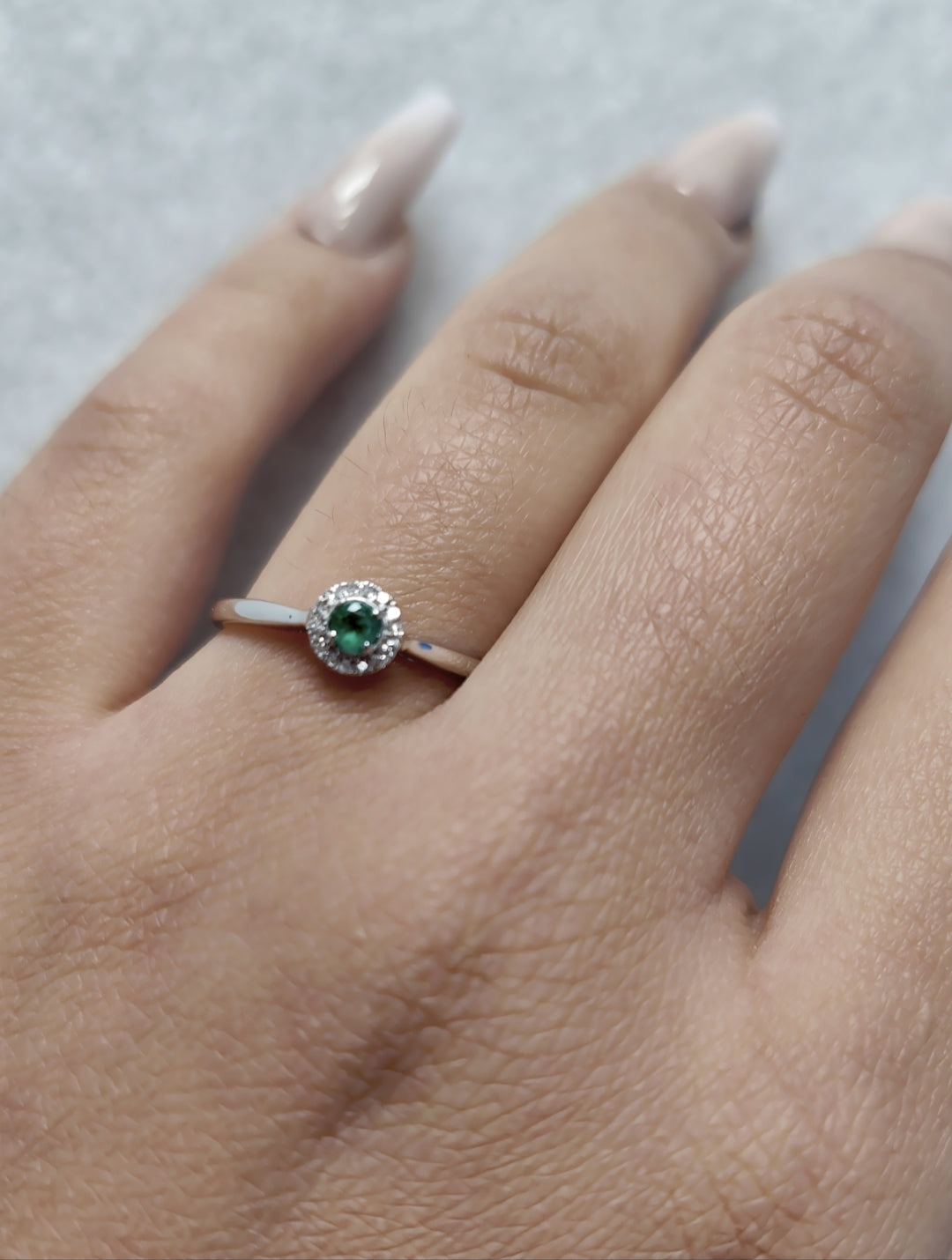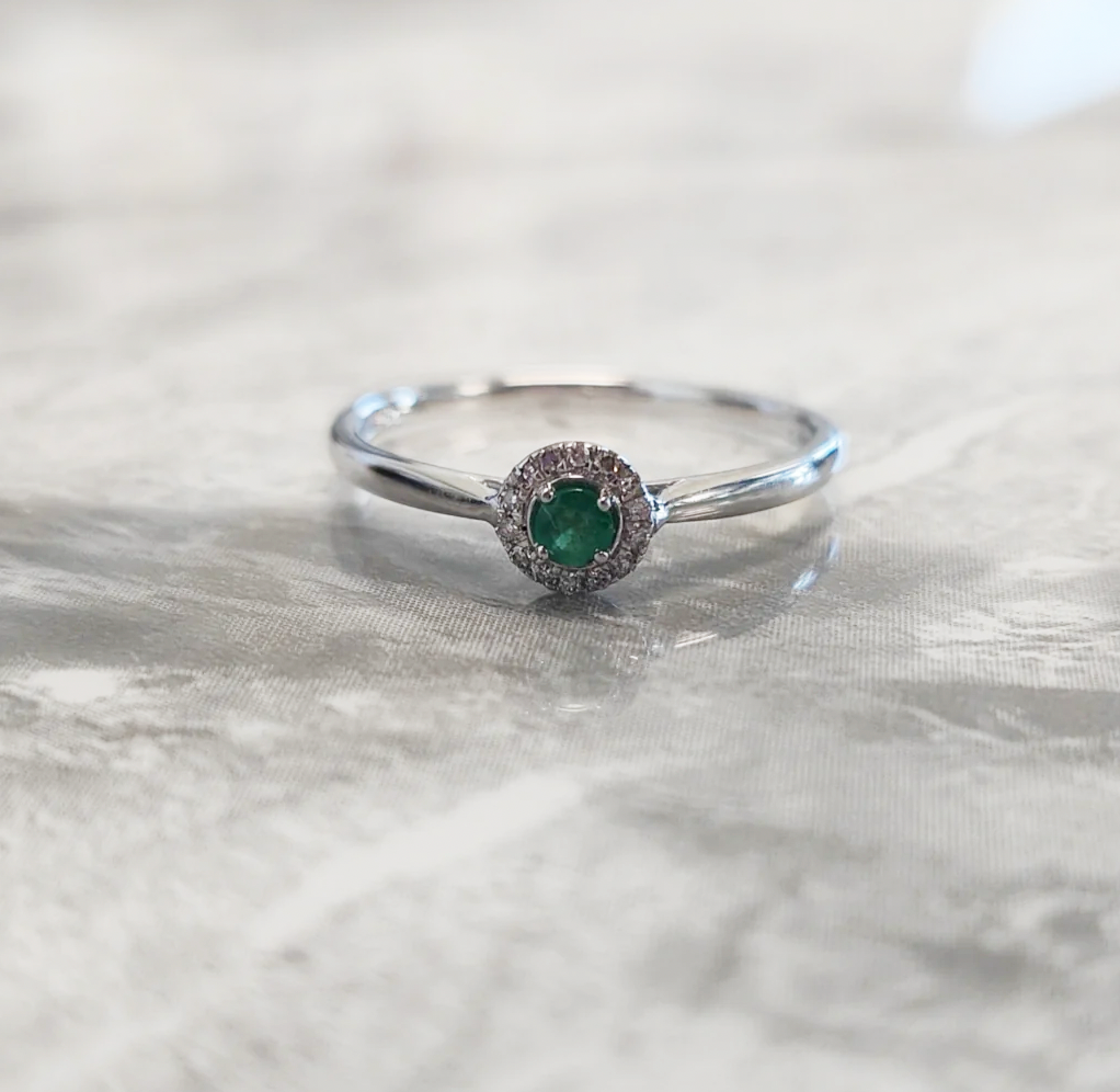 This exquisite piece features a stunning emerald centerpiece that radiates a mesmerizing green hue, symbolizing prosperity and new beginnings. The brilliant diamonds surrounding the emerald add a touch of luxury and eternal commitment. Crafted with meticulous attention to detail in premium 9ct white gold, this ring isn't just jewelry—it's a powerful statement of refined taste and emotional depth. Perfect for marking significant milestones or simply celebrating the beauty of life's precious moments.