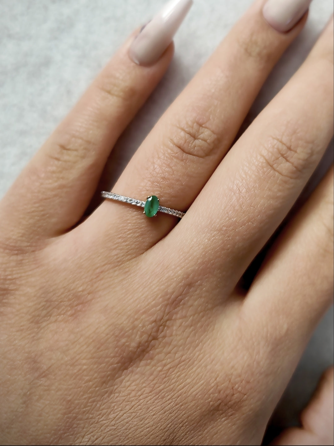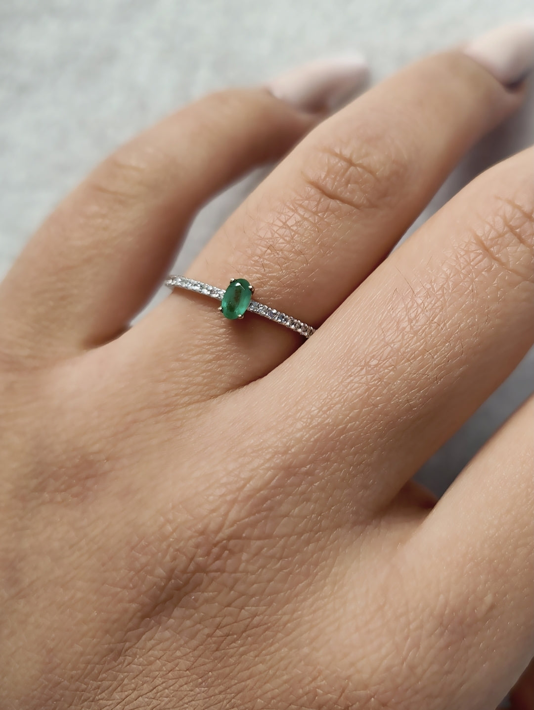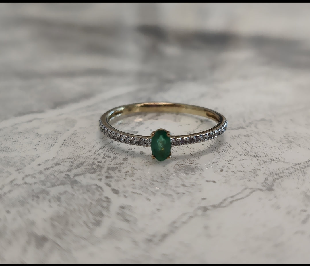 MJ Emerald Oval Solitaire Ring with Diamond